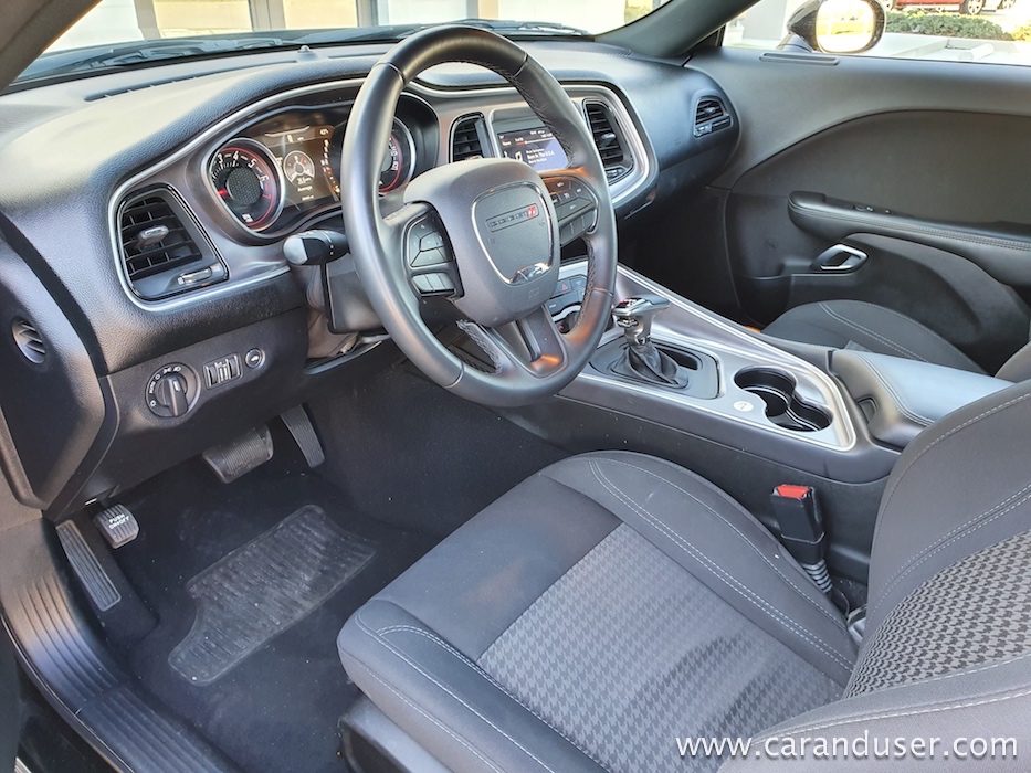 Začetna in opazna razlika Challengerja v tem segmentu je njegova velikost. Zunanji gabariti so večji in temu primerno sledi tudi komoditeta v notranjosti. V t. i. notchback coupe segmentu, kjer je zadek vozila znatno manjši od sprednjega in potniškega dela, je Dodgev »pony« prostorsko najbolj navdušujoč. Basanje kovčkov v prtljažni del, ki nudi 459 litrov ni bilo niti najmanj primerljivo s tistimi golf luknjami v Camaru in Mustangu. Prtljažna vrata se odpro gosposko, kot se za nalaganje dolgocevnih pušk in lopat spodobi. Hollywoodski filmski nauki pač.