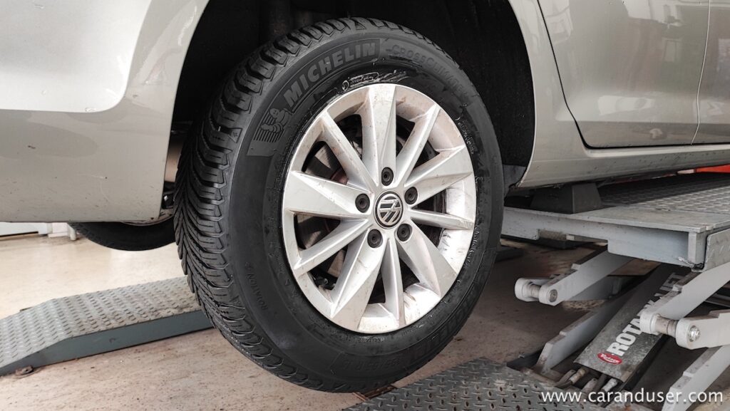 Eno je teorija, drugo praksa. Sveže pnevmatike Michelin Cross Climate 2 v dimenziji 195/65 R15 smo nadeli na karavanskega Golfa Variant VII (2020) pri pooblaščenem prodajalci in vulkanizerju Avtomojster, ki se nahaja v Ljubljani na Cesti Dolomitskega odreda 137.