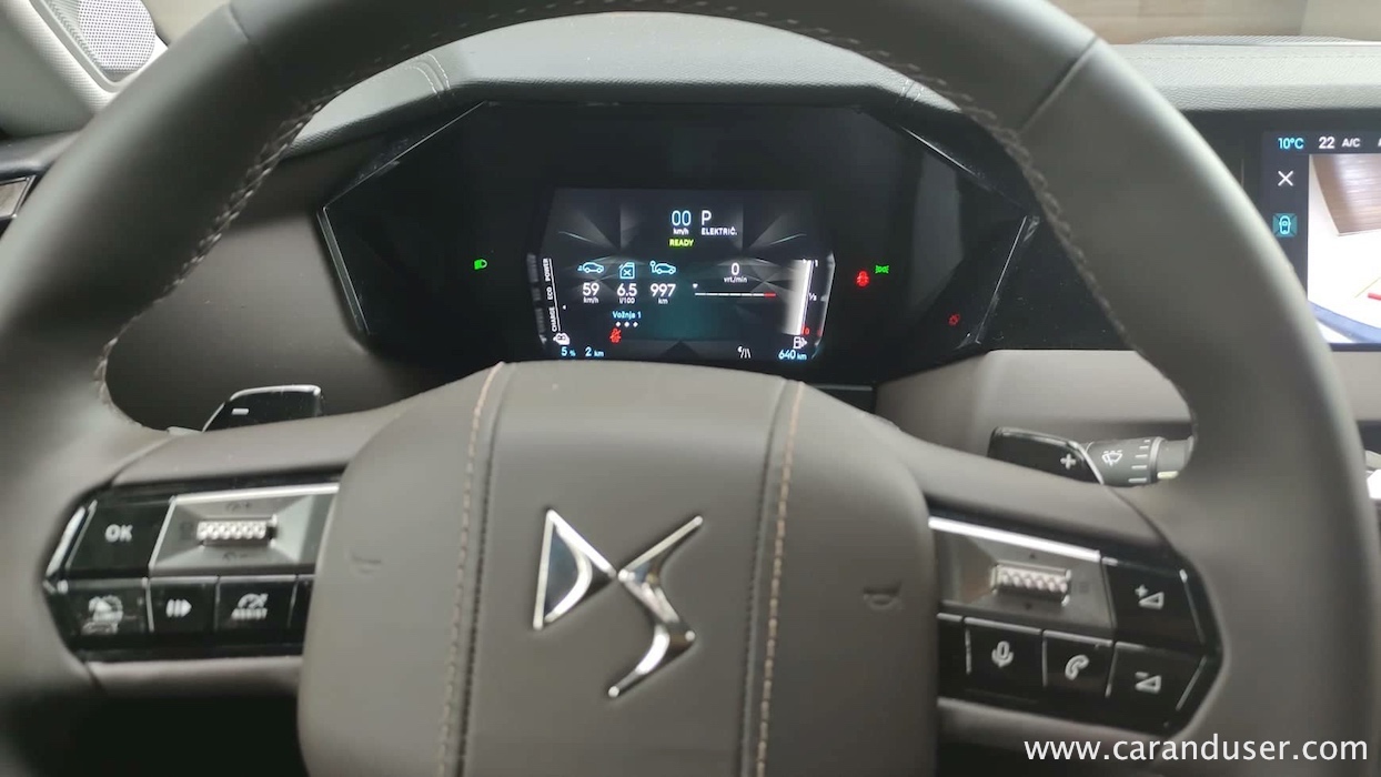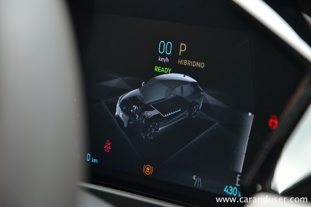 Preselimo se v podpločevinje, kjer sta svoje mesto našla oktanski in električni pogon. Priključno-hibridna simbioza, ki sled vgrajene baterije s kapaciteto 12,4 kWh odščipne 40 litrov prtljažnega prostora, prinaša 225 KM sistemske moči in obljubo o električni avtonomiji v višini 55 kilometrov. Teh v praksi pričakovano nismo dosegli, jih pa brez pretiranega miselnega napora prevozite 30 na avtocesti in deset več v mestu. DS-ov Type 2 električni priključek omogoča polnjenje z izmeničnim tokom vse do moči 3,2 kW, kar bo shrambo elektronov nasitilo v štirih urah, medtem ko bo hišna šuko vtičnica polnjenje opravili v osmih – delovnik ali nočni počitek torej. Poraba goriva je potemtakem odvisna od frekvence polnjenja, mi smo z eno šaržo baterije za nadaljevanje do stotih kilometrov porabili slabih pet litrov goriva, kar ni bistveno manj od klasično gnane konkurence.