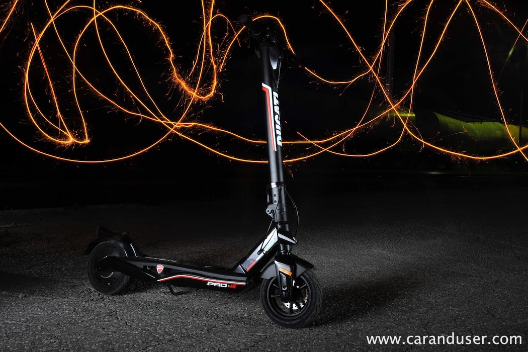 Motor zmore 350 W moči, v samem vrhu pa je sposoben iz sebe iztisniti 515 W. V tem trenutku je Ducati Pro 3 eden redkih (mestnih) skirojev, ki je opremljen z diskastimi zavorami tako spredaj kot zadaj. Za pomoč pri doseganju 35-kilometrskega dosega mu pomaga KERS (Kinetic Energy Recovery System). Čeprav so Italijani sprva govorili o 50-kilometrskemu dosegu, so ga na koncu omejili na omenjeno število. V praksi boste lahko opravili med 25 in 28 kilometri, kar je več kot dovolj, da v prestolnici brez težav pridete z enega konca na drugega.