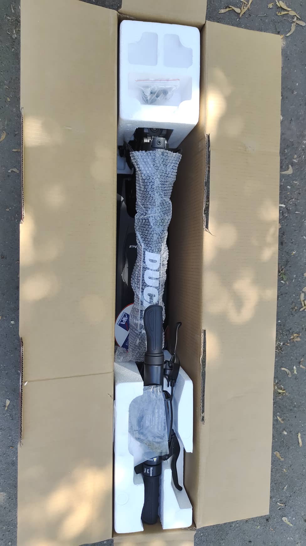 Velikost škatle je primerljiva z večino preostalih konkurentov, sestavljanje pa tudi ne terja kaj več kot namestitev krmila, povezovanja dveh kablov in vijačenja treh vijakov. A, če si niste predhodno ničesar prebrali o Ducatiju Pro 3 vožnja, kljub polni bateriji, še ne bo mogoča. Zakaj? Ob nakupu dobite dve NFC kartici, ki služita kot ključ za odklepanje skiroja, za to ju nikar ne izgubite. Skiro je sicer možnost zagnati še z Ducatijevo aplikacijo na pametnem telefonu, a vseeno je NFC ključek bistveno bolj priročna napravica.