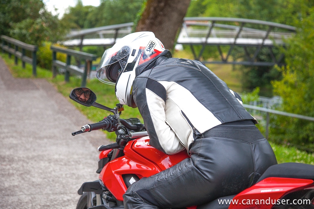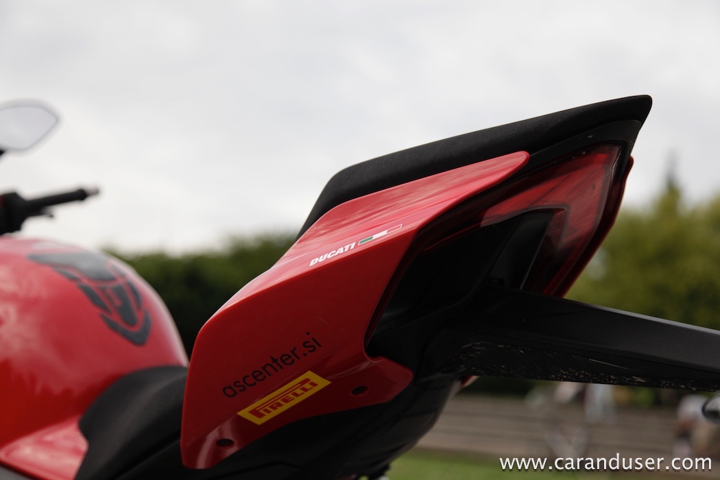 Streetfighter je to, kar obljublja. Vsekakor se pohvali s surovo močjo V4 motorja, ampak se zdi nekako obvladana, tako da zna gospod sofisticirano paradirati tudi čez mesto, brez večjih ekscesov sva namreč obvladala tako Ljubljano kot Piran, da primorske gneče skozi drevored niti ne omenjam. Tam sem se sama sicer nekoliko prestrašeno držala ročk, ampak to je bil le odraz mojega strahospoštovanja do bolonjskega paradnega konja letošnje sezone.