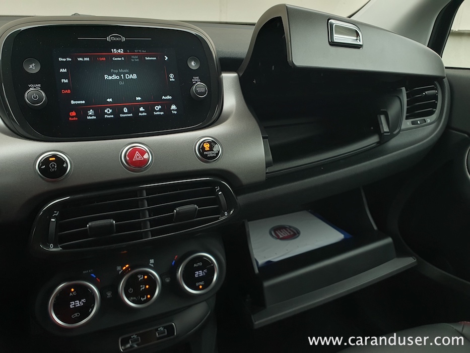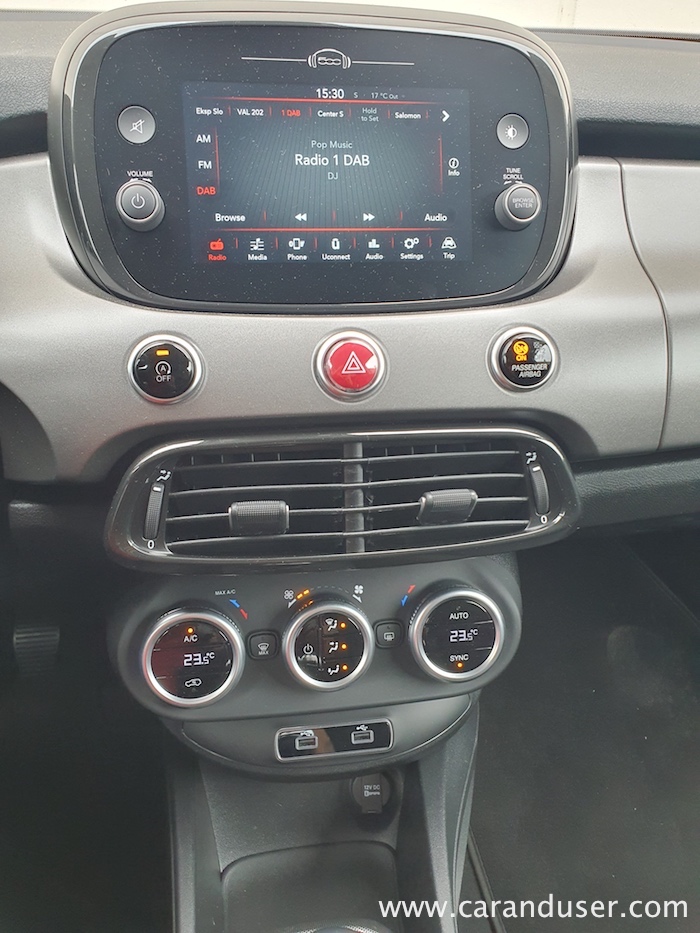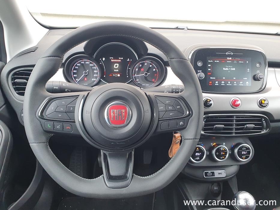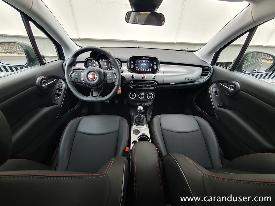 Seveda je Sport oprema pri 500X danes nekaj veliko bolj razsežnega kot pred tremi desetletji v Unu. Gospodje in gospe iz Torina so v ta pehar tokrat dodali športne odbijače, velika 18-palčna platišča, dvojno izpušno cev in prav lično v črnino odet ambient, katerega oblazinjenje se bohoti z rdečimi šivi. Vse to na podlagi serijsko bistveno bolj opremljenega vozila, kot so to počeli v sredini 1980-ih. Vseeno se za volanom 500X tudi manj vešči sodobnih rešitev hitro znajdete. Kljub izrazitemu pohodu digitalizacije torinski X ohranja nekaj več smisla za rokovanje, ne tipkanje. Tako sta pred voznikom recimo dva analogna števca, volan nudi precej nabora funkcij, v osrednjem delu pa so vrtljiva stikala z vgrajenimi tipkami za nadzor klimatizacije. Na dnu je dvojni USB priključek, na vrhu vsega pa manjši multimedijski zaslon. To je vse in več kot dovolj za vsakodnevno mestno tlako, ki brez obotavljanja sprejme tudi več deset kilometrov magistralnega dnevnega potepanja.