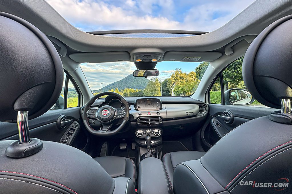 Platnena streha se sicer ne pospravi v zadek vozila, kot smo tega vajeni pri klasičnih kabrioletih, a se vseeno obnaša kot prava kabrio streha. Tako lahko svojo “navdušenje” nad lokalnimi “Rossiji” na svojih Vespah po ulicah Trsta izrazite kar čez odprto streho, prav tako pa ponuja svež vetrič v poletni vročini. A kot rečeno ima ta streha vse lastnosti kabria, torej tudi slabe. Občasno se boste prestrašili hrupa sosednjega tovornjaka v tunelu, bobnenja pri hitrostih nad 90 kilometrov na uro, rahlega škripanja zaradi pomankanja vmesnega veznega dela na strehi in zvoka dežja v slabem vremenu.