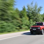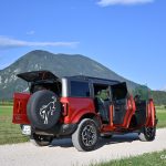 »A velik žre?« so ob izbuljenih očeh takoj na plano izpljunili vsi nebodijihtreba zavistneži. Ja, nekaj pa… Deset in pol v povprečju na celotnem testu, kjer nas je Bronco vmes praktično dostavil ob krožnik s štruklji na Kofcah, pa vse do sprejemljivih devet na normnem krogu. Dve toni tristo in nabrit bencinski pogon na terenskem vzmetenju niso zmagovalni recept za varčnost, za prešerno veselje pač! Tudi tisto, ko utrujeni po celodnevni hoji v hribih svojo zadnjo plat posadite na izvlečno platformo v 470-litrškem prtljažniku, radostno sezujete pohodne čevlje in se nasmejite odlično preživetemu dnevu v naravi, ki se bo nadaljeval tudi do doma. Morda pa si v poletnih dneh v nekaj minutah snamete streho in vrata ter se odpravite ogledovat zvezde nekam visoko, kamor se peš tako pozno ne bi odpravili. Opcij kako unovčiti Bronca je mnogo, malce manj pa ugodnih načinov kako ga pripeljati v domačo garažo.