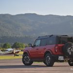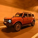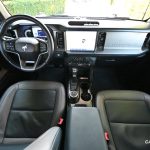 Sprva preverimo novodobni pedigre Bronca, saj prihaja tako v klasični terenski kot v pomehkuženi Sport izvedbi. Slednja je na prvo žogo evropskim kupcem bolj pisana na kožo (ter garažo in cesto), konec koncev bazira na arhitekturi nam dobro znane Kuge, a to ne bo predmet današnje diskusije, zato jo bomo zaprli tukaj, zdaj. Testni Bronco je namreč čistokrvni ameriški terenec, katerega temelj izvira iz Rangerja, najbolj uspešnega pickupa na evropskih tleh, in je poslan na trg kot neformalni konkurent Jeepovemu Wranglerju. Novodobni Bronco tako odlikujejo inteligentni štirikolesni pogon, dobrih 26 cm oddaljenosti od tal, 7 načinov vožnje s peterico po neutrjenem terenu, Bilsteinovo vzmetenje za prečenje najbolj zahtevnih terenov in možnost brodenja po 80 cm globoki vodi. Pravi tabornik torej z nekaj alpinističnega znanja, brez kančka mestne uglajenosti.