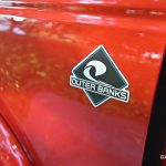 Da je Bronco pravi pobalin poskrbi njegovo V6 srce. 2,7-litrski prisilno polnjeni agregat zmore 335 KM in 563 Nm navora, ki ga preko 10-avtomatike prenaša na vsa štiri kolesa – pri Broncu Outer Banks to pomeni pravcati terenski 4×4 z izbirnim vklopom sprednjega ali zadnjega elektronskega diferenciala, ki omogočajo izbiro med 4WD Low, 4WD High, 4WD Automatic in 2WD High (zadnji pogon). Temu dodajte še sedmerico voznih profilov (Normal, Eco, Sport, Slippery & Sand, Baja, Mud & Ruts in Rock Crawl), ki jih jezdec izbira preko vrtljivega GOAT (Goes Over All Terrain) stikala in samodejno prilagodijo odziv pogona ter vse zgoraj naštete pogonske tehnike. Enostavno in praktično – povsem ameriško. Tudi nekaj manj kot 7 sekund z mesta do stotice vas ne bo pustilo ravnodušnih, malce manj veselja pa bo na hitrih avtocestah. Bronco namreč ne gre hitreje kot 160 km/h, vendar ne zaradi pogona temveč hribovskega podvozja. V zimskih gojzarjih na katere lahko namestite alpinistične dereze pač ne šprintate na asfaltu, takisto velja za Bronca in njegove terenske čeveljce.