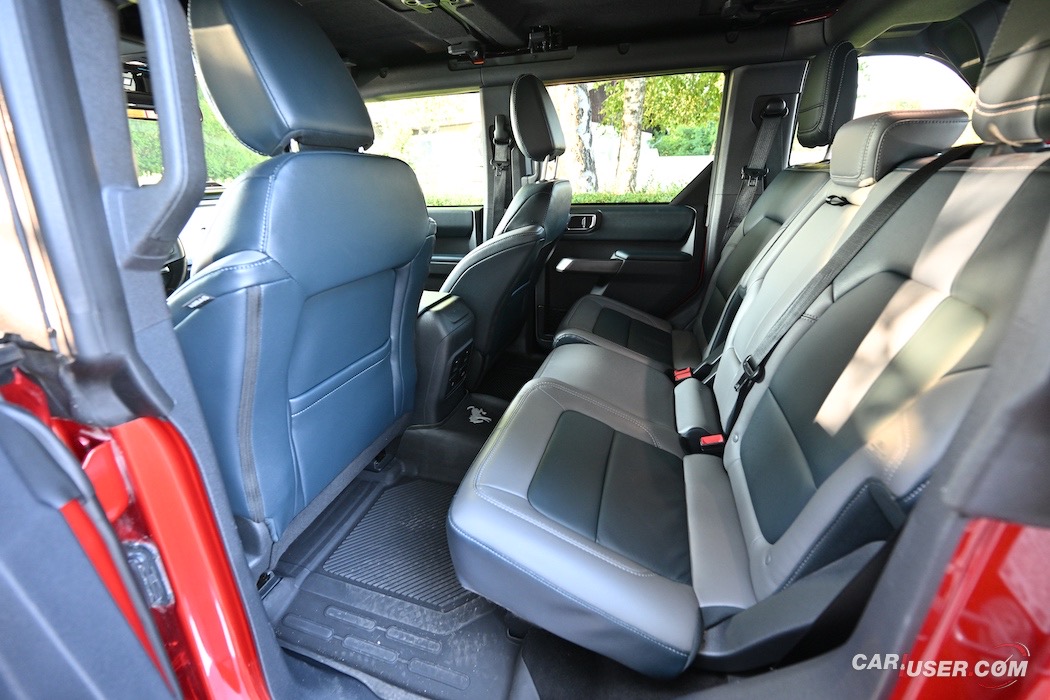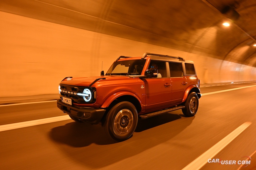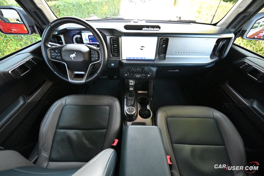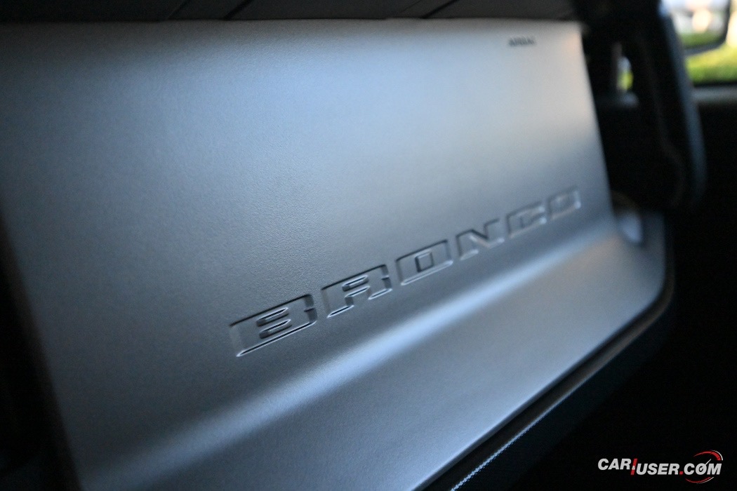 Ne bo povsem držalo, saj v robustno in oglato zastavljenem ambientu naletite na velik 30,5-centimetrski multimedijski osrednji zaslon, Bang & Olufsen premium ozvočenje z nizkotoncem za nažiganje vam ljubih melodij, usnjene in električno pomične sedeže ter kup sodobne digitalno-asistenčne navlake s predalom za brezžično polnjenje mobilnika. To zadnjo oznako nikar ne vzeti v slabem smislu, saj 360-stopinjska kamera, adaptivni tempomat in podobne rešitve močno olajšajo pot do naslednjega zabaviščnega parka – hribi, močvirja, kolovozi in gozdne poti vseh vrst. To so Broncova (in vaša) igrišča, kjer velikost in robatost avtomobila ne omejujeta pri razposajenosti.