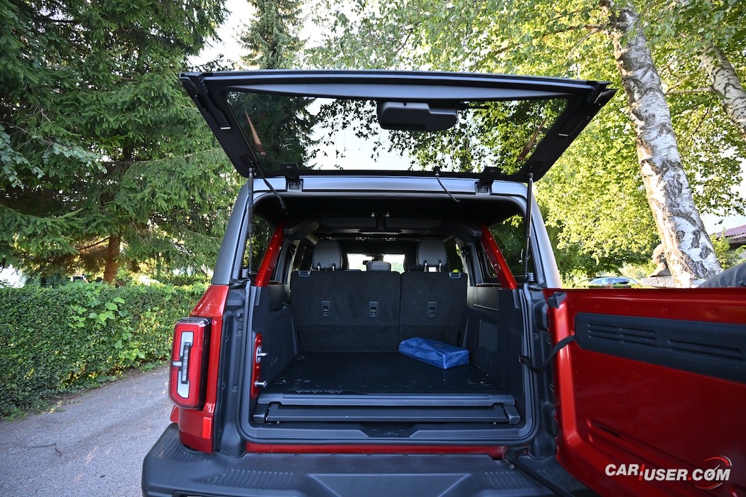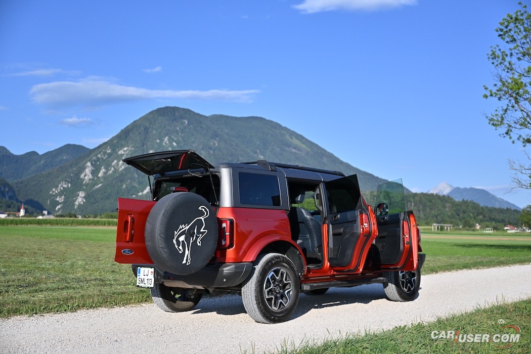 »A velik žre?« so ob izbuljenih očeh takoj na plano izpljunili vsi nebodijihtreba zavistneži. Ja, nekaj pa… Deset in pol v povprečju na celotnem testu, kjer nas je Bronco vmes praktično dostavil ob krožnik s štruklji na Kofcah, pa vse do sprejemljivih devet na normnem krogu. Dve toni tristo in nabrit bencinski pogon na terenskem vzmetenju niso zmagovalni recept za varčnost, za prešerno veselje pač! Tudi tisto, ko utrujeni po celodnevni hoji v hribih svojo zadnjo plat posadite na izvlečno platformo v 470-litrškem prtljažniku, radostno sezujete pohodne čevlje in se nasmejite odlično preživetemu dnevu v naravi, ki se bo nadaljeval tudi do doma. Morda pa si v poletnih dneh v nekaj minutah snamete streho in vrata ter se odpravite ogledovat zvezde nekam visoko, kamor se peš tako pozno ne bi odpravili. Opcij kako unovčiti Bronca je mnogo, malce manj pa ugodnih načinov kako ga pripeljati v domačo garažo.