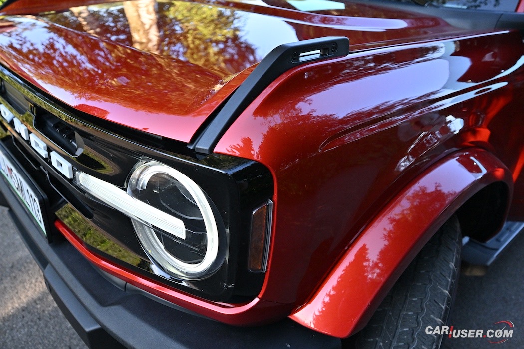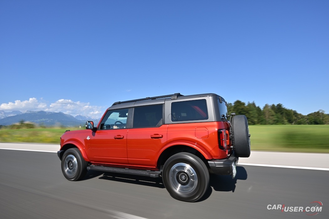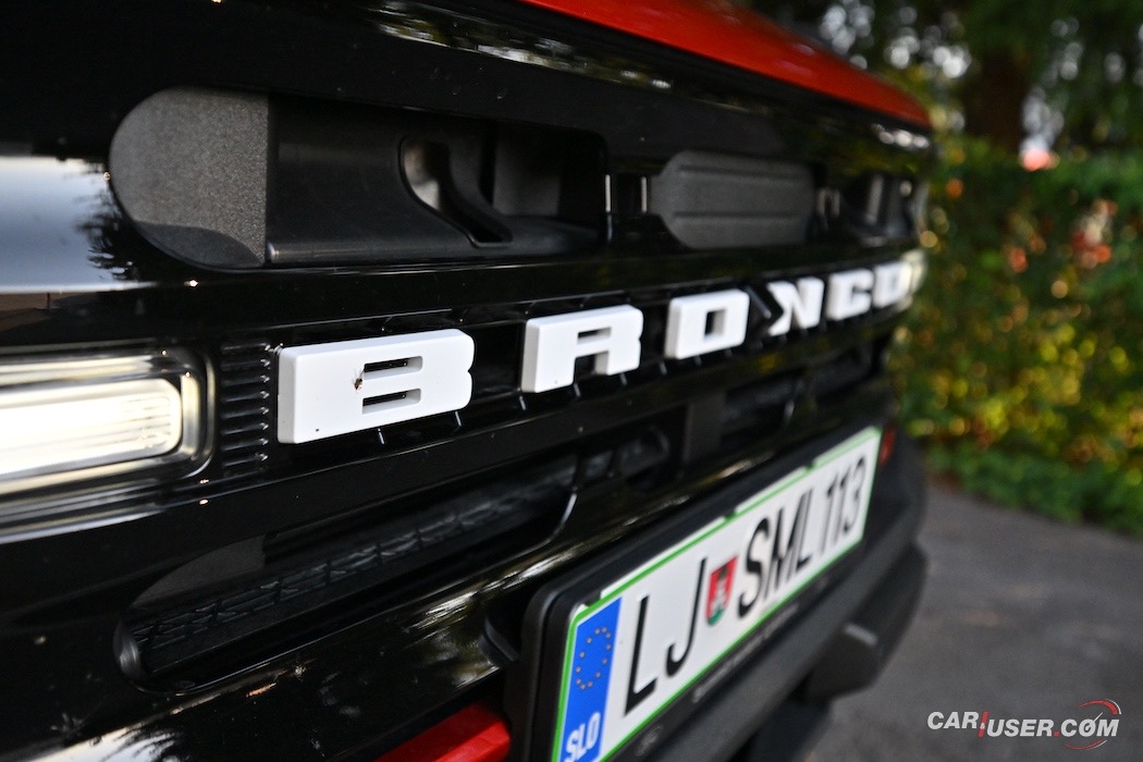 Sprva preverimo novodobni pedigre Bronca, saj prihaja tako v klasični terenski kot v pomehkuženi Sport izvedbi. Slednja je na prvo žogo evropskim kupcem bolj pisana na kožo (ter garažo in cesto), konec koncev bazira na arhitekturi nam dobro znane Kuge, a to ne bo predmet današnje diskusije, zato jo bomo zaprli tukaj, zdaj. Testni Bronco je namreč čistokrvni ameriški terenec, katerega temelj izvira iz Rangerja, najbolj uspešnega pickupa na evropskih tleh, in je poslan na trg kot neformalni konkurent Jeepovemu Wranglerju. Novodobni Bronco tako odlikujejo inteligentni štirikolesni pogon, dobrih 26 cm oddaljenosti od tal, 7 načinov vožnje s peterico po neutrjenem terenu, Bilsteinovo vzmetenje za prečenje najbolj zahtevnih terenov in možnost brodenja po 80 cm globoki vodi. Pravi tabornik torej z nekaj alpinističnega znanja, brez kančka mestne uglajenosti.