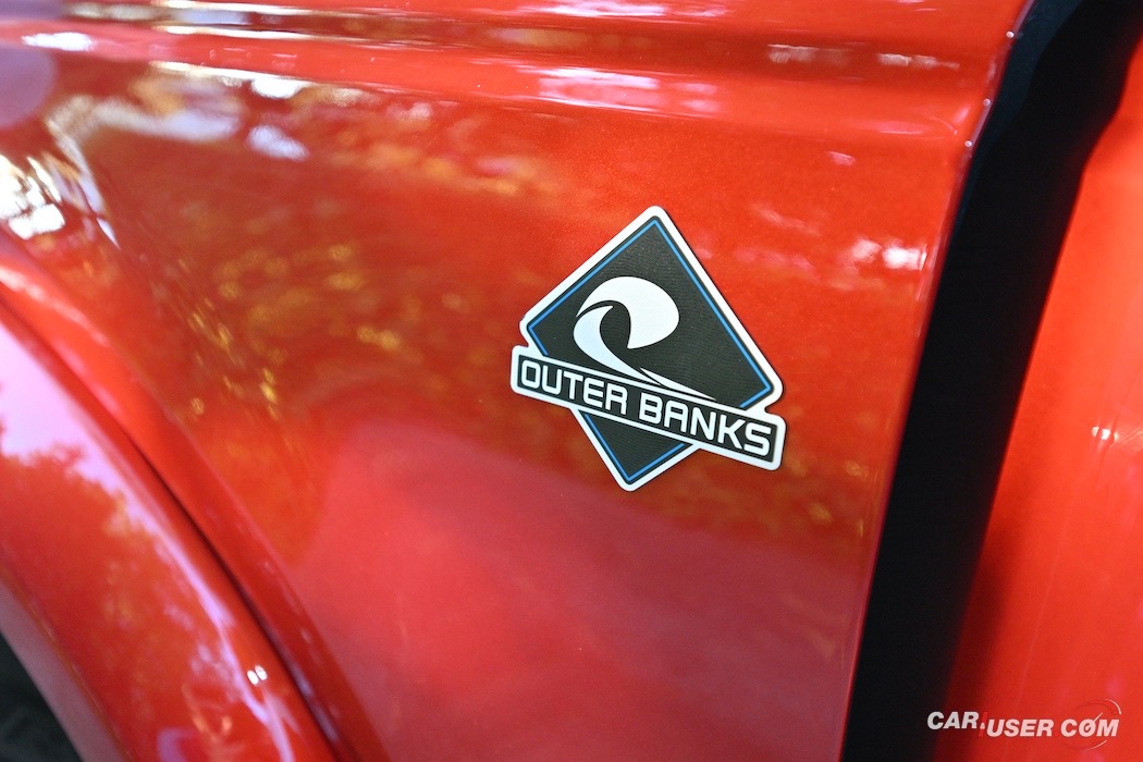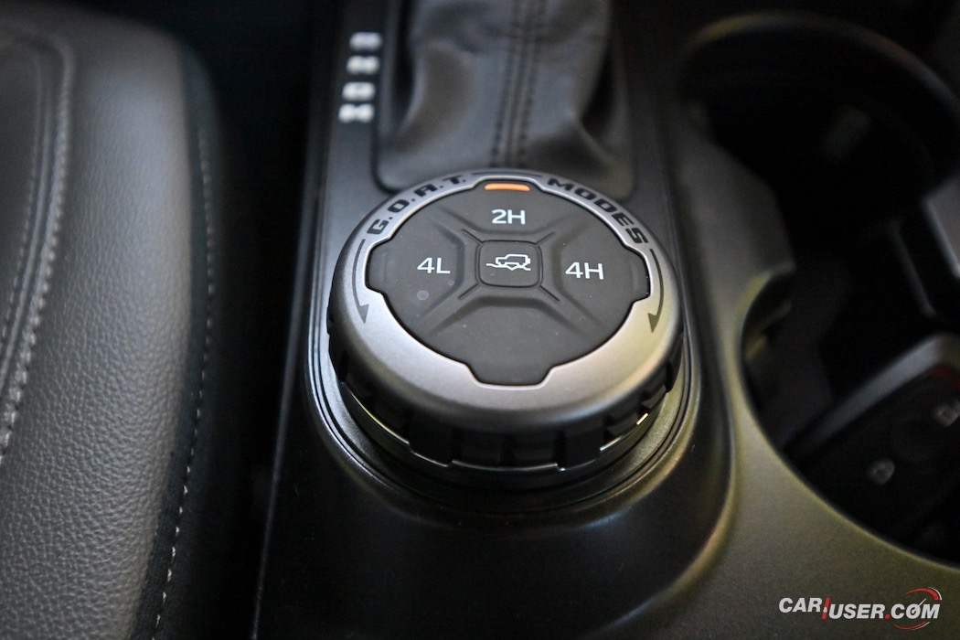 Da je Bronco pravi pobalin poskrbi njegovo V6 srce. 2,7-litrski prisilno polnjeni agregat zmore 335 KM in 563 Nm navora, ki ga preko 10-avtomatike prenaša na vsa štiri kolesa – pri Broncu Outer Banks to pomeni pravcati terenski 4×4 z izbirnim vklopom sprednjega ali zadnjega elektronskega diferenciala, ki omogočajo izbiro med 4WD Low, 4WD High, 4WD Automatic in 2WD High (zadnji pogon). Temu dodajte še sedmerico voznih profilov (Normal, Eco, Sport, Slippery & Sand, Baja, Mud & Ruts in Rock Crawl), ki jih jezdec izbira preko vrtljivega GOAT (Goes Over All Terrain) stikala in samodejno prilagodijo odziv pogona ter vse zgoraj naštete pogonske tehnike. Enostavno in praktično – povsem ameriško. Tudi nekaj manj kot 7 sekund z mesta do stotice vas ne bo pustilo ravnodušnih, malce manj veselja pa bo na hitrih avtocestah. Bronco namreč ne gre hitreje kot 160 km/h, vendar ne zaradi pogona temveč hribovskega podvozja. V zimskih gojzarjih na katere lahko namestite alpinistične dereze pač ne šprintate na asfaltu, takisto velja za Bronca in njegove terenske čeveljce.