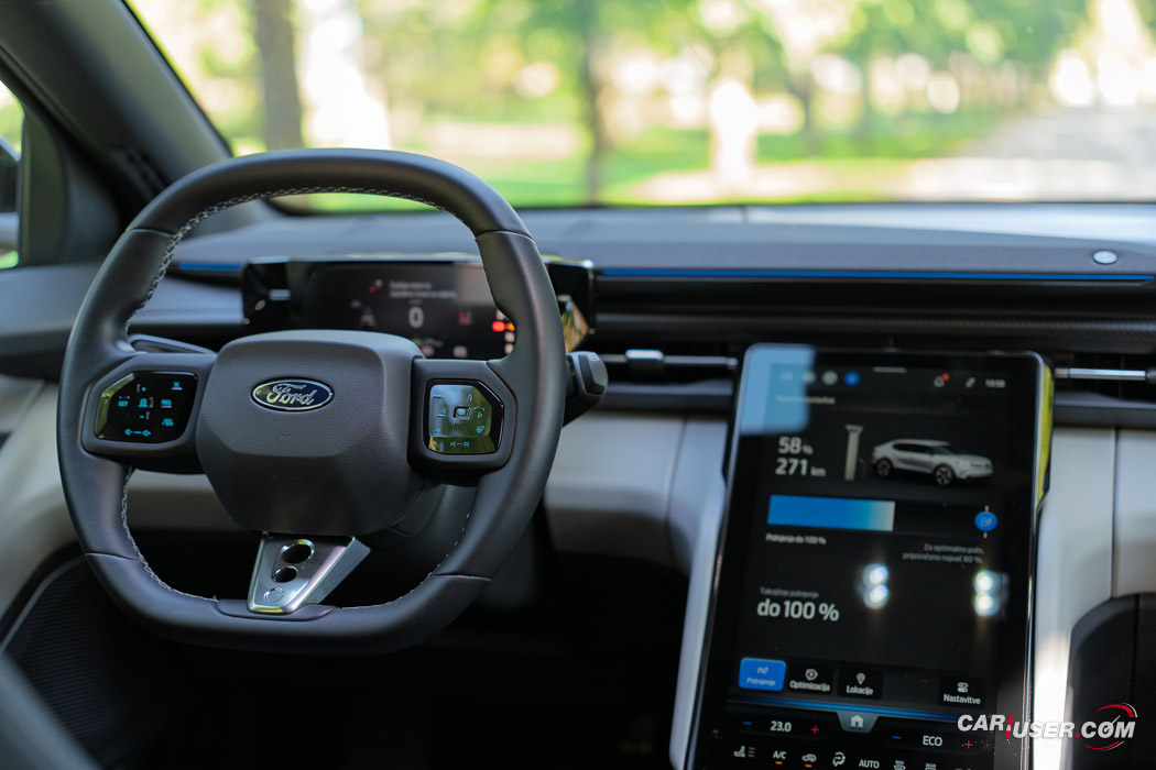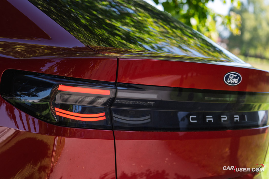 Capri EV je prav res všečen voz, ki nudi nemško e-tehniko v kombinaciji z ambientom znanim iz Forda Explorerja EV, njegov »joker« pa je zagotovo retro reinterpretacija legende izpred nekaj desetletij. Preklop na Sport vozni profil doda nekaj iskrivosti v sicer nič kaj skromen pogon na zadnji osi, a fizika in dve toni sto na tehnici pač terjata svoje pri agilnosti. Kljub dobremu »fordovsko« čvrstemu podvozju, zavore vsej tej masi niso kos, so precej mehke in s slabimi povratnimi informacijami – morda zaradi bobnov zadaj in diskov zgolj spredaj.