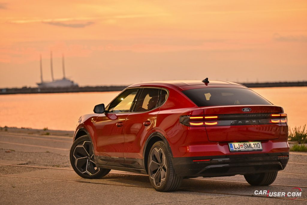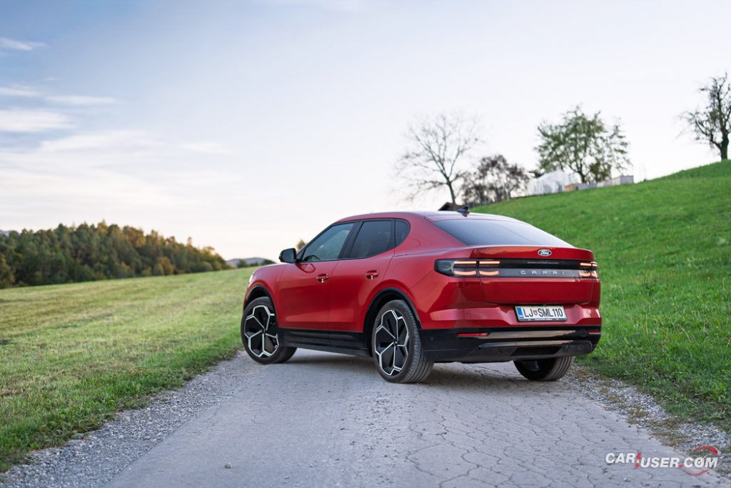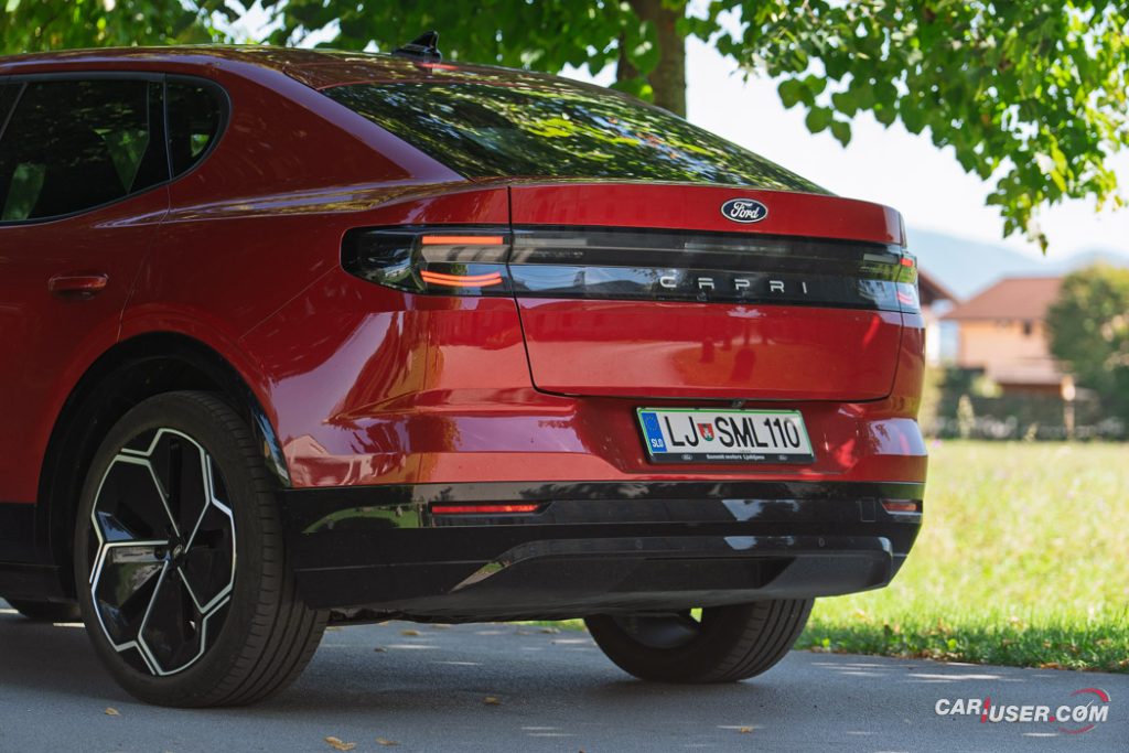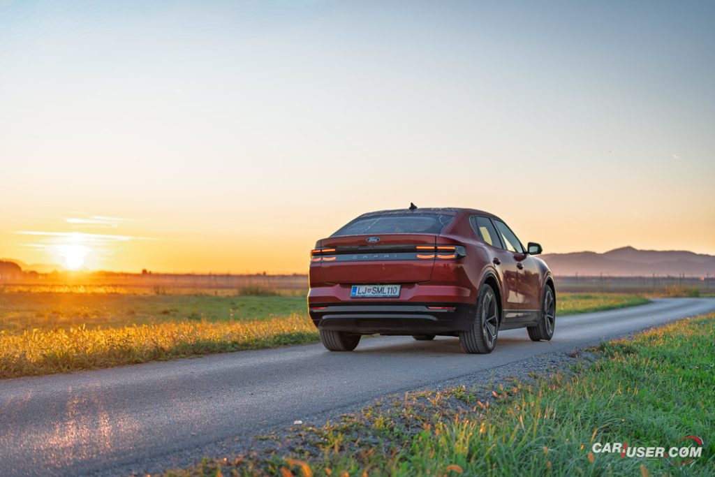 Capri EV je prav res všečen voz, ki nudi nemško e-tehniko v kombinaciji z ambientom znanim iz Forda Explorerja EV, njegov »joker« pa je zagotovo retro reinterpretacija legende izpred nekaj desetletij. Preklop na Sport vozni profil doda nekaj iskrivosti v sicer nič kaj skromen pogon na zadnji osi, a fizika in dve toni sto na tehnici pač terjata svoje pri agilnosti. Kljub dobremu »fordovsko« čvrstemu podvozju, zavore vsej tej masi niso kos, so precej mehke in s slabimi povratnimi informacijami – morda zaradi bobnov zadaj in diskov zgolj spredaj.