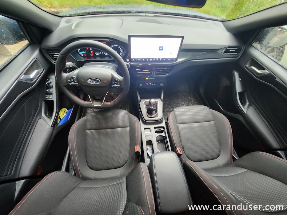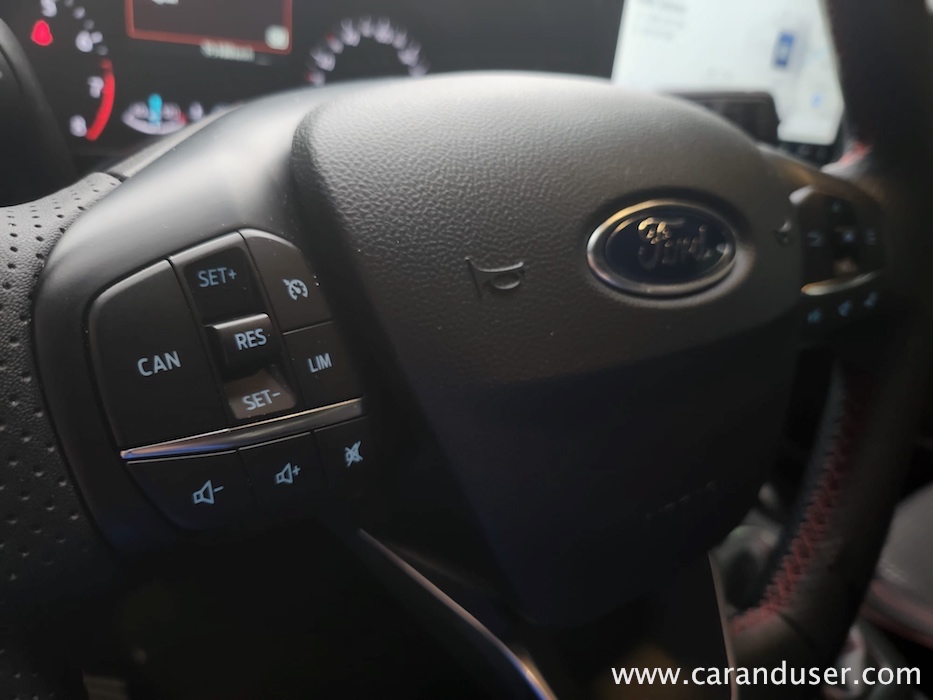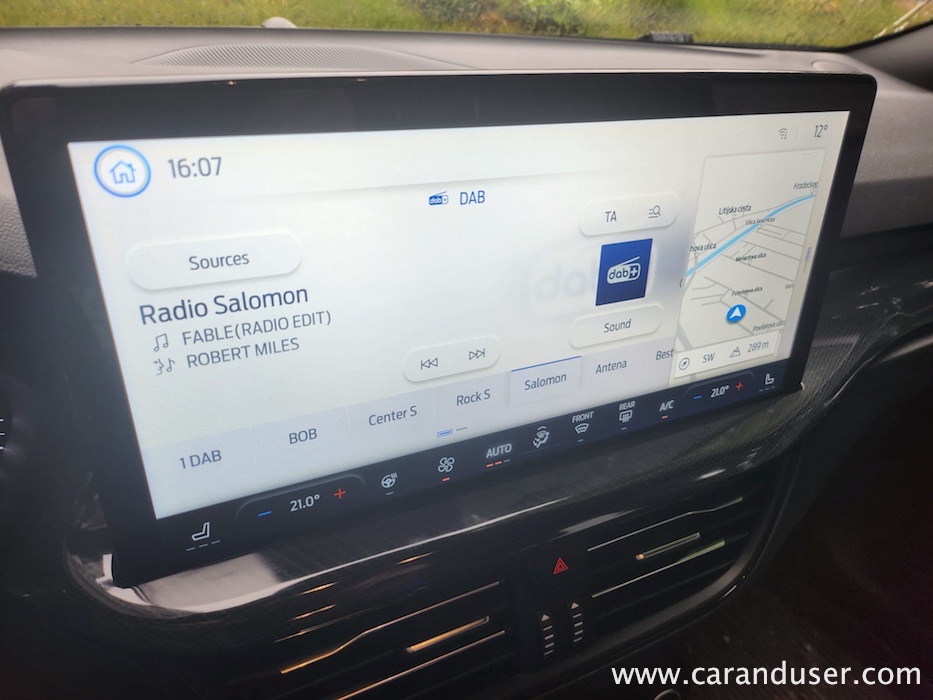 Še več hvale bi namenil 13,2-palčnemu osrednjemu multimedijskemu zaslonu s SYNC 4 vmesnikom. Dolgo smo čakali na Fordovo nadgradnjo digitalne hibe svojih vozil in jo naposled dočakali. Napredek v zmogljivosti procesiranja in grafiki je precejšen, posledično pa se je kar nekaj fizičnih stikal preselilo v digitalno obliko. Nad všečnim ST-Line športnim oblazinjenjem sedežev, volana in prestavne ročice pa se tako ali tako ne gre pritoževati.