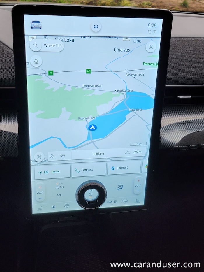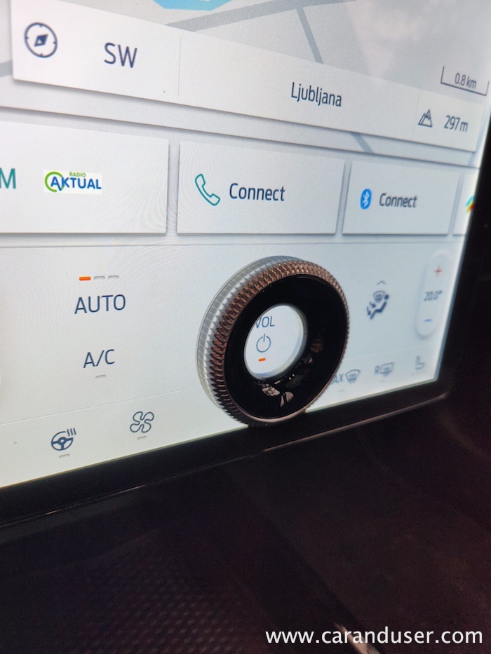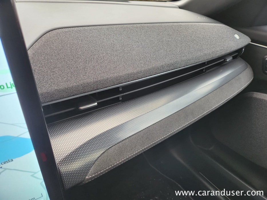 Preskok v napredno sedanjost se nadalje izraža v ambientu. Izstopa po Tesli povzet ogromni osrednji zaslon, ki ima v dnu nameščen vrtljiv gumb za nastavitev glasnosti. Da nažgete rock, ko si vaša duša zaželi nekaj sproščenih trenutkov iz kvalitetnega Bang & Olufsen ozvočenja ali, ko dušno melodijo hipoma ubrzdate, saj vas sled neslišnega pogona okolica med žganjem električne kitare gleda z zgražanjem (in zavistjo!). Uporaba osrednjega zaslona hitro postane intuitivna in ima logično zasnovo, zato pretiranega obremenjevanja možganskih celic ne gre pričakovati.