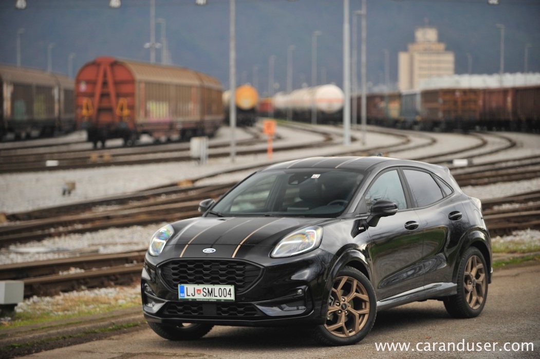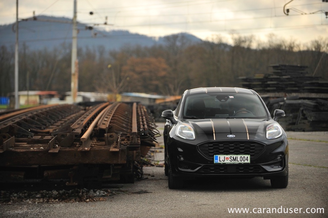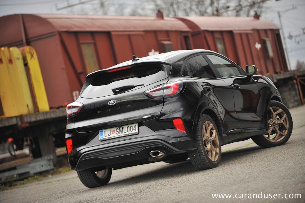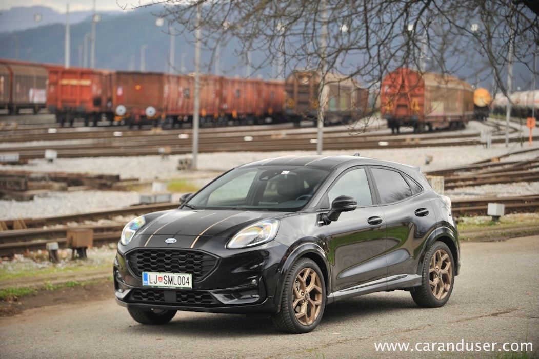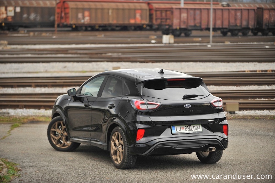 Torej, naša testnica je najbolje opremljena in najbolj zmogljiva Puma ta hip. Vsaj kar se tiče evropskih salonov »modrega ovala«, kjer v tem segmentu prevladujejo taki in onaki hibridi. Fordov blago-hibridni sklop (mHEV) ni neznanka. Dirigentsko palico vihti EcoBoost litrski trivaljnik s poskočnimi 155 KM na merilnih valjih. Glede na pregovorno trše Fordovo podvozje se dobro podkrepljena Puma ni bala agilnosti med zavoji. Kleno se bori z zakoni fizike in sled doplačanega samodejnega menjalnika jo je bilo prav zabavno malce bolj urno usmerjati tako med ljubljanskimi ulicami kot tudi širši okolici. Dolgi zavoji magistral ji niso tuji, prav nič se ne pritožuje tudi na avtocestnih odsekih. Skratka, sape ji ne zmanjka prav hitro, vseeno pa značaja iz serije Ford Performance ne pričakujte.