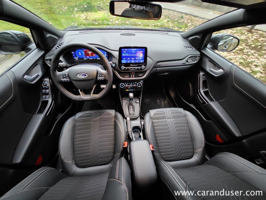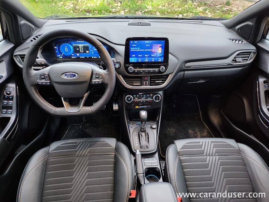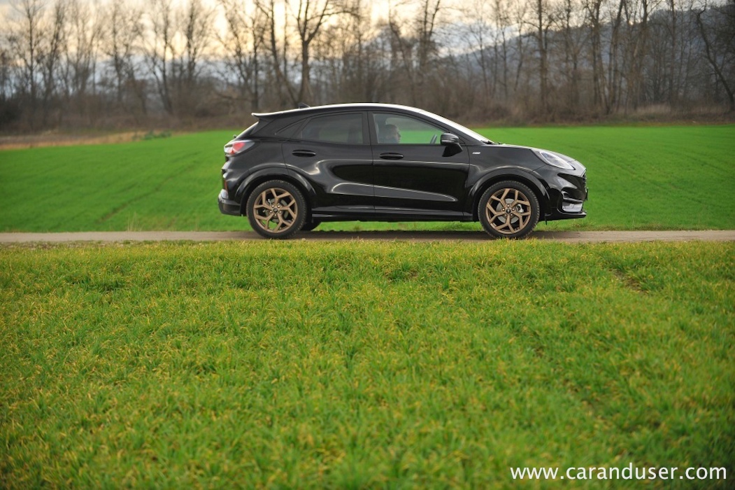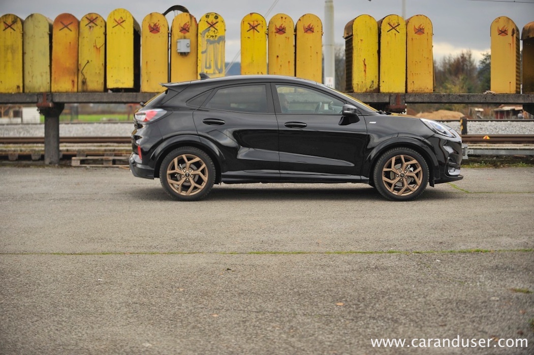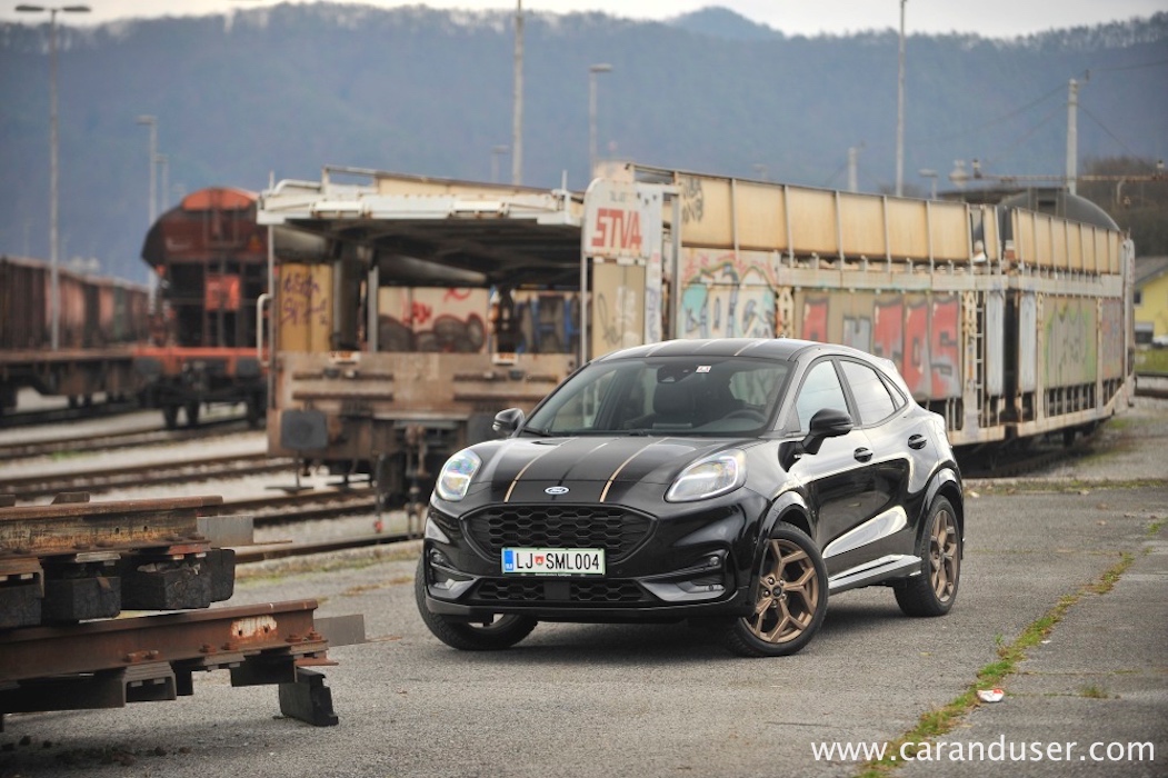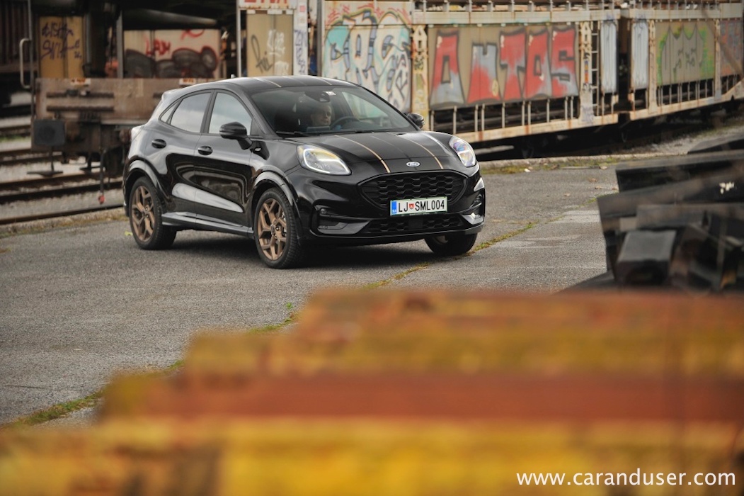 Torej, naša testnica je najbolje opremljena in najbolj zmogljiva Puma ta hip. Vsaj kar se tiče evropskih salonov »modrega ovala«, kjer v tem segmentu prevladujejo taki in onaki hibridi. Fordov blago-hibridni sklop (mHEV) ni neznanka. Dirigentsko palico vihti EcoBoost litrski trivaljnik s poskočnimi 155 KM na merilnih valjih. Glede na pregovorno trše Fordovo podvozje se dobro podkrepljena Puma ni bala agilnosti med zavoji. Kleno se bori z zakoni fizike in sled doplačanega samodejnega menjalnika jo je bilo prav zabavno malce bolj urno usmerjati tako med ljubljanskimi ulicami kot tudi širši okolici. Dolgi zavoji magistral ji niso tuji, prav nič se ne pritožuje tudi na avtocestnih odsekih. Skratka, sape ji ne zmanjka prav hitro, vseeno pa značaja iz serije Ford Performance ne pričakujte.