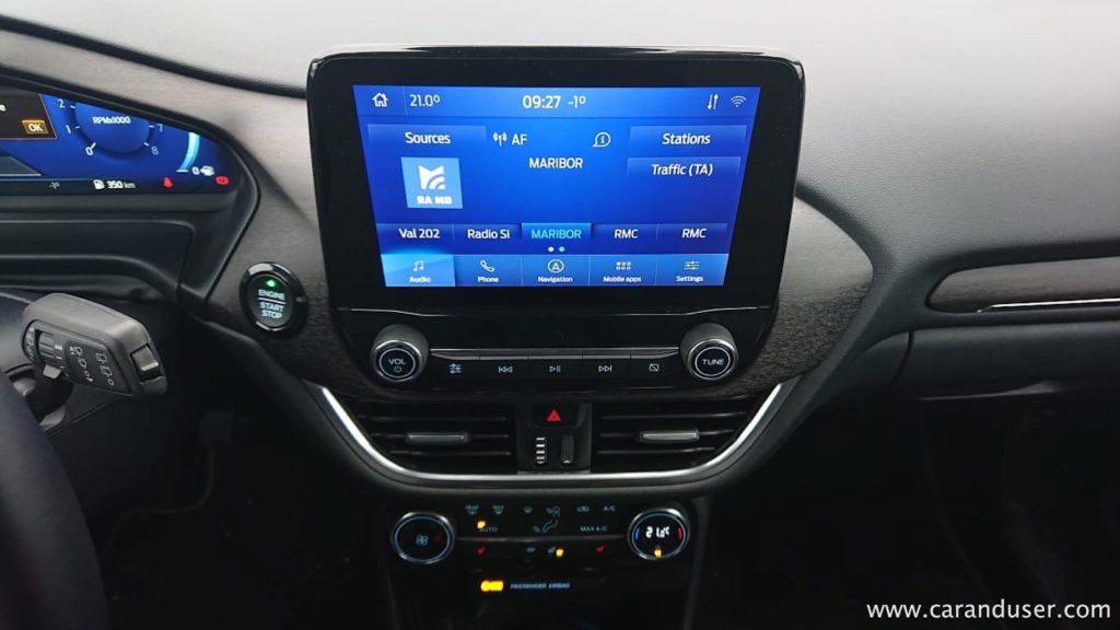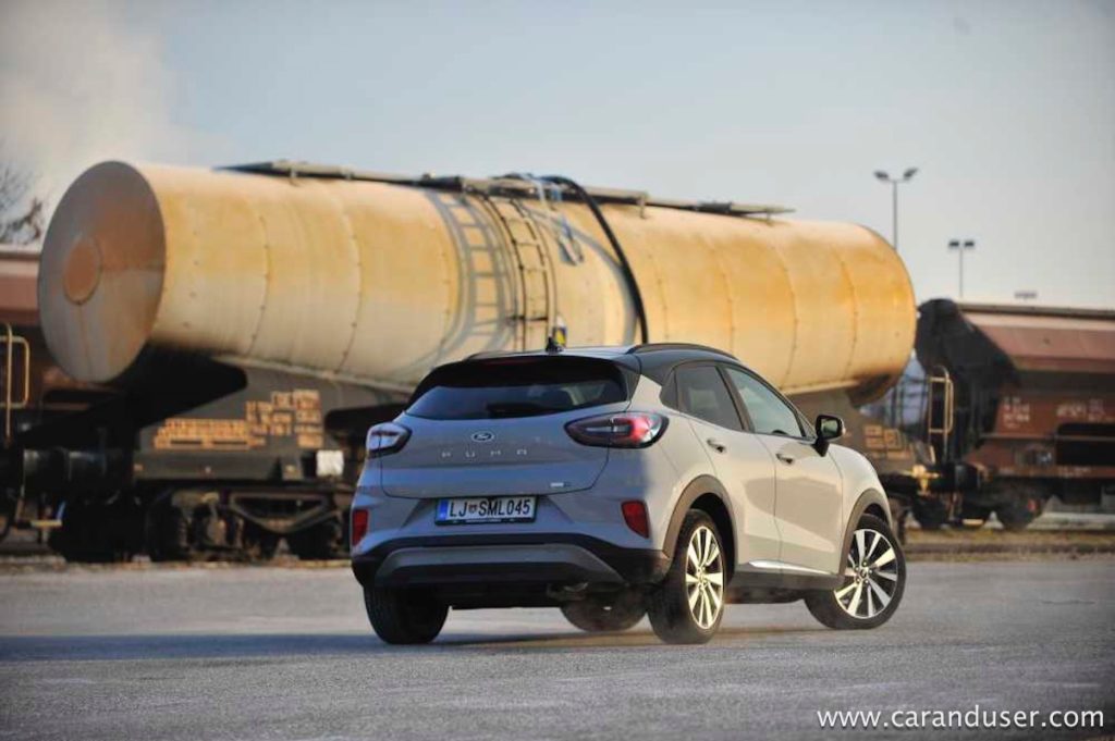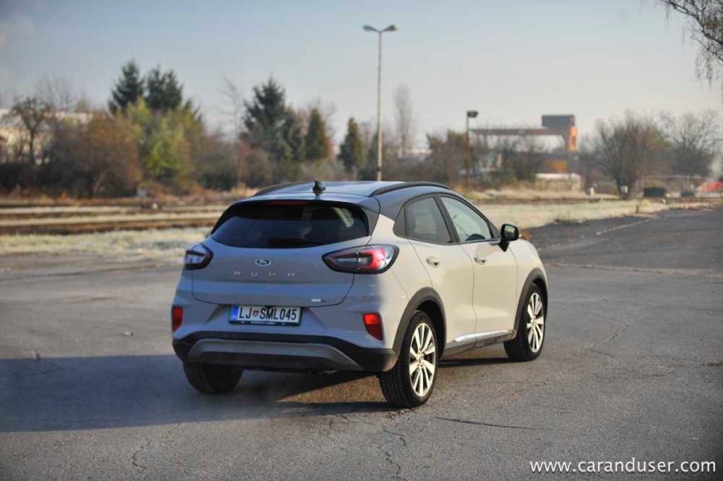 Tam se je nahajal litrski trivaljnik EcoBoost s 125 KM, ki mu poskočnosti ne gre grajati, vseeno pa na voznika prenaša puma12preveč vibracij in na avtocestnih odsekih zahteva precej bolj pohojeno stopalko za plin, da se lahko suvereno prehiti vozilo ali dve. Blagi hibridni pogon MHEV je agregatu le v pomoč, saj mu asistira pri pospeševanjih, da se zmanjša poraba goriva. Poraba slednjega je na normnem krogu zbašala 6,3 litra oktanskega napoja, v primeru avtoceste ali pretežno mestne vožnje pa raje pričakujte sedmico. Gre pa na tem mestu pohvaliti vodljivost vozila. Nedvomno med boljšimi v segmentu, pa tudi blaženje je precej dobro, saj se kljub velikim platiščem neurejenost slovenskih cest ni tako izrazila.