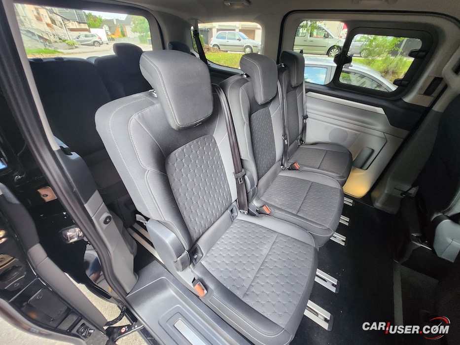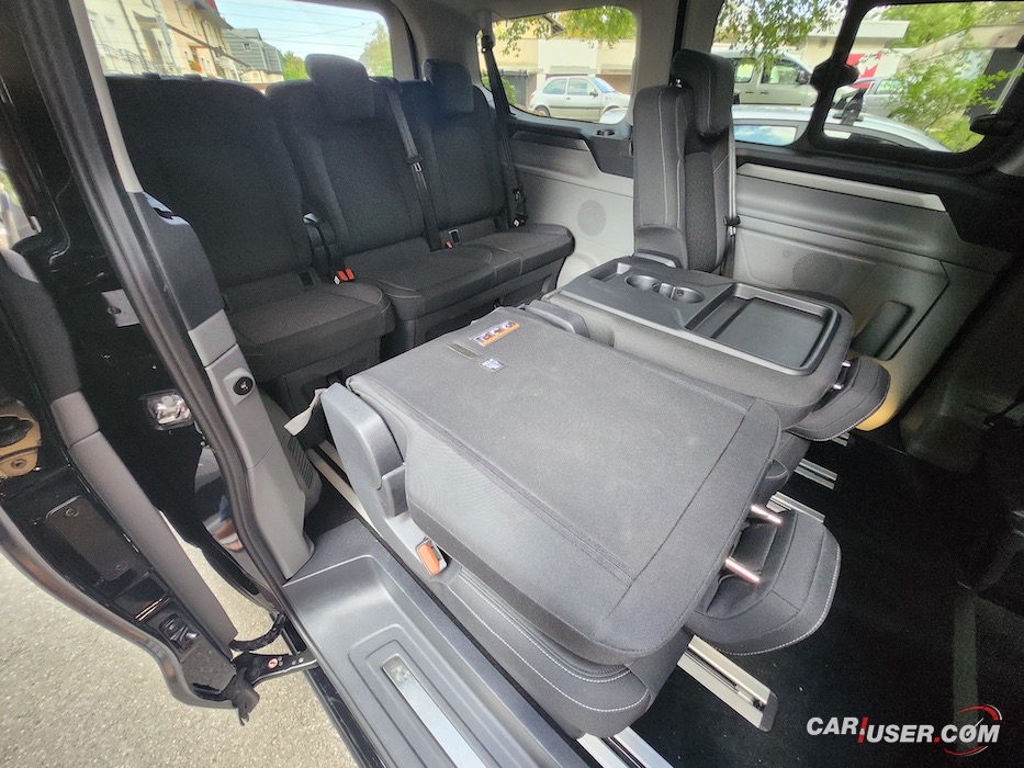 Spredaj dva udobna samostojna sedeža za pilota in kopilota, zadaj pa dve vrsti individualno vzdolžno pomičnih in odstranljivih sedežev, ki se lahko postavijo tudi v konferenčno postavitev. Vsa ta fleksibilnost s sedeži je sicer precej priročna reč, ki pa lahko ob igranju od hormonov raztresenih najstnikov in otrok nekoliko utruja poveljniški most v prvi vrsti. Morda jih malce zaustavi sodobna digitalna tehnologija, ki si jo bodo lahko napajali iz kar nekaj naokoli razsejanih USB-A vtičnic – na podstavku sedežev prve vrste, ob C-stebričku oziroma ob drsnih vratih, medtem ko ima prva vrsta na voljo A in C priključka.