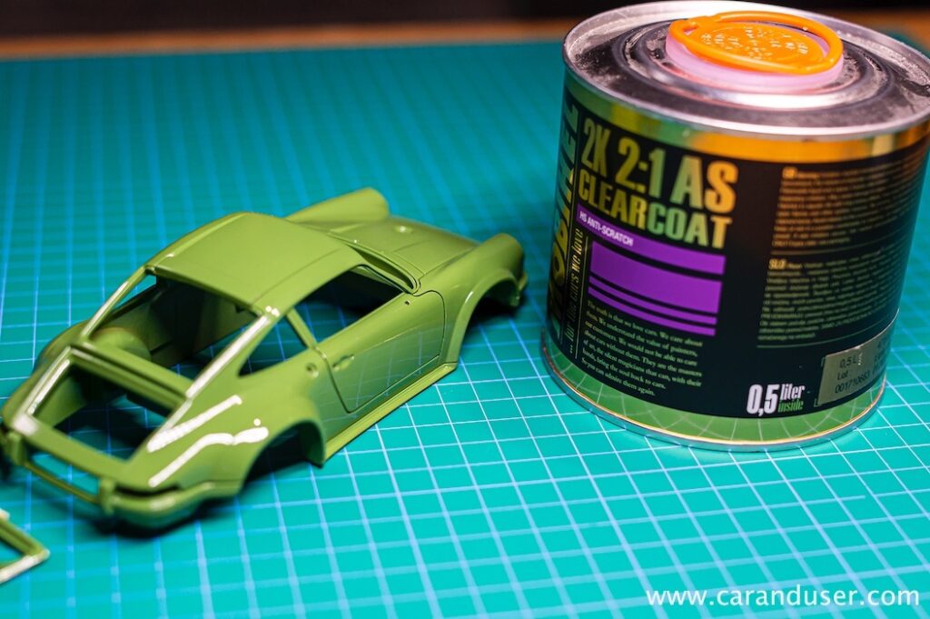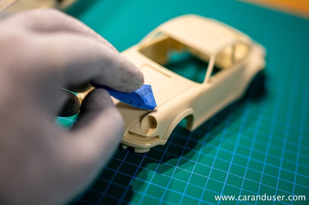 Ko zagotovimo, da so vsi odlitki očiščeni silikatov, sledi priprava na barvanje. Zaradi načina brizganja plastike, oziroma v tem primeru ulivanja resinske smole, so pri maketah, kjer je celotna karoserija iz enega dela, reže med različnimi karoserijskimi deli premalo globoke. Sledi postopek poglabljanja spojev s čemer zagotovimo, da bodo reže vidne tudi po vseh slojih barve in laka, ki jih imamo namen nanesti na karoserijo.