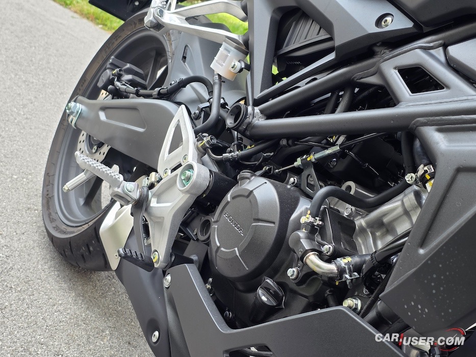 Obrat ključa v položaj kontakta, stisk zavore ter pritisk gumba. Poteza zbudi rohneči enovaljnik, ki je sparjen s 6-stopenjskim nožnim (ročnim) menjalnikom. Upravljanje Honde CB125R me je nekoliko spomnilo na ljudski avtomobil iz Wolfsburga, kjer je (vsaj do nedavnega) bilo vse na predvidljivem mestu, ukazi so bili jasni in eksaktni, celoto pa sta povzemala preprosto razumevanje ter upravljanje.