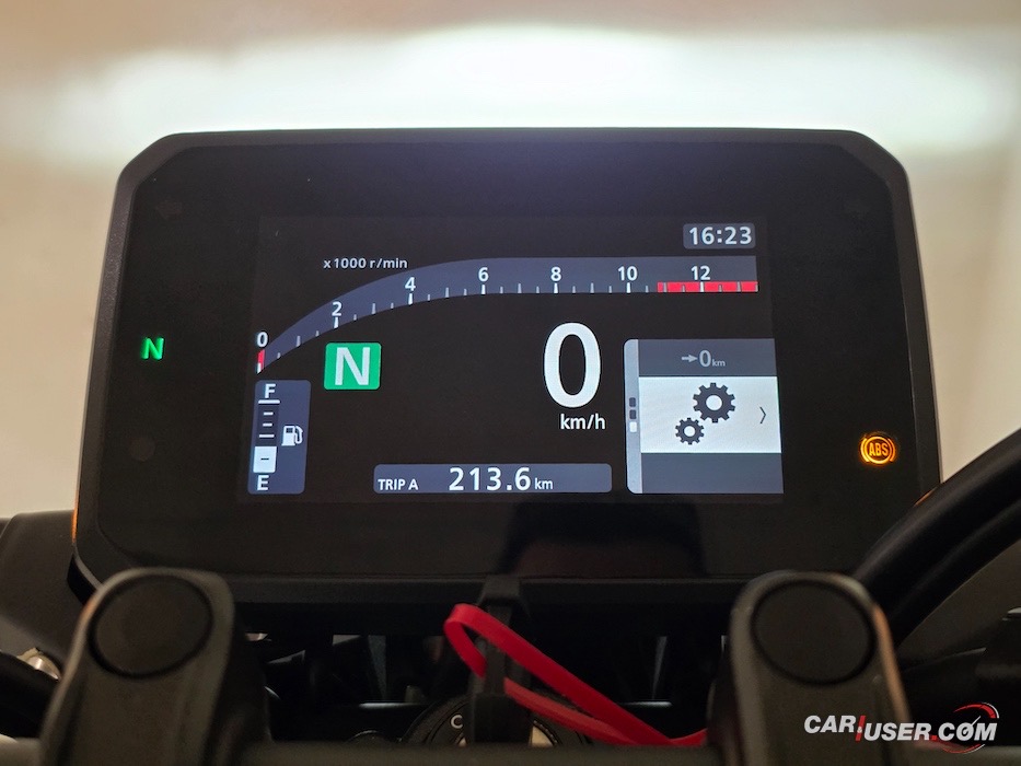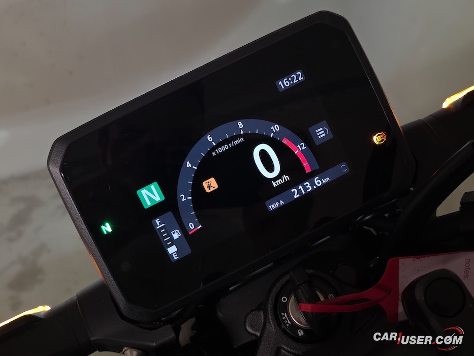 Komande na krmilu so jasne, lahko dostopne in z malo vaje se voznik vešče premika po menijih novega 5-palčnega barvnega TFT zaslona, ki je sposojen od večjih hišnih bratov (CB1000R). Nudi različne sloge prikaza instrumentne plošče, indikator trenutne prestave in prestavno opozorilno lučko ter podatki o trenutni, povprečni porabi, prevoženih kilometrih, povprečni hitrosti …