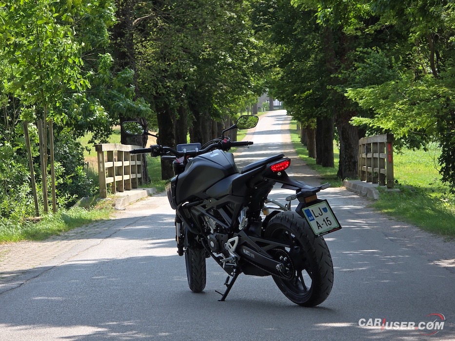 Verjamem pa, da bodo Hondo CB125R izbrali navdušenci, ki jo bodo pretežno koristili na podeželskih cestah. Višje hitrosti motorju ne vzamejo sape, do izraza pa pride agilnost šasije. Ovinki postanejo obvezen del popotovanj, saj je CB125R prelagati pravo veselje. Dejstvo je, da se vozniku v situaciji prehitevanja lahko kolca po večji kubaturi, vendar če se pogosto ne znajdeš v takšnih scenarijih, potem je skrb odveč. Sicer vem, da na tem mestu morim, vendar poraba goriva na 100 prevoženih kilometrov znaša 2,5 litra. V praksi do pomeni do 400 kilometrov med bencinskima črpalkama.