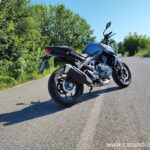 Rokovanje je otročje lahko. Brez šale. Zdi se, kot bi naokrog premetaval kakšno Tomosovo legendo. 190 kg se pelje lepo. Ubogljivo sodeluje pri nizkih hitrostih, kjer lahko mirne duše lenarite v 6. prestavi že od 50 km/h dalje. Entuziastično tuli pri priganjaju tja proti 9.500 motornimi vrtljaji. Serpentine so pravi užitek. Manevriranje pred domačim kafičem nezahtevna in brez adrenalinskih pretresov. Avtocesta pa tja do 150km/h povsem znosna. Na 100 prevoženih kilometrov se v povprečju zadovolji s 4,2 litra goriva.