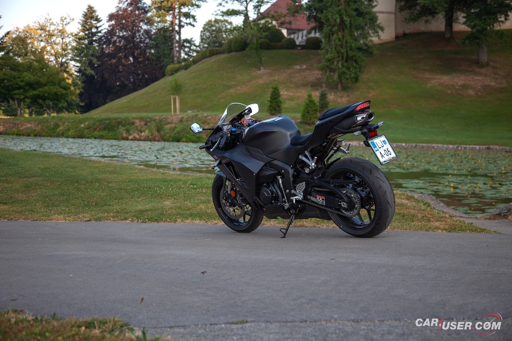 Nisem še vozil motorja s spojlerji. Mat črna bojna barva, aerodinamični izrastki spredaj, aerodinamični izrastki zadaj. Zlobno zašiljena reža, v katere temačnih globočinah se skrivajo žarometi. Širok rezervoar. Rohnenje, ki bi si ga sam peklenšček nastavil za budilko, če se ne bi zavedal vseh pasti uzporabe pametnega telefona. In ergonomija, ki vsem, ki niso rojeni v tem tisočletju, na obraz prižene nekak kislo-genak nasmešek. Honda CBR600RR. Legenda. Nekdaj mokre sanje vsakega kratkohlačnika. Dandanes malo manj.