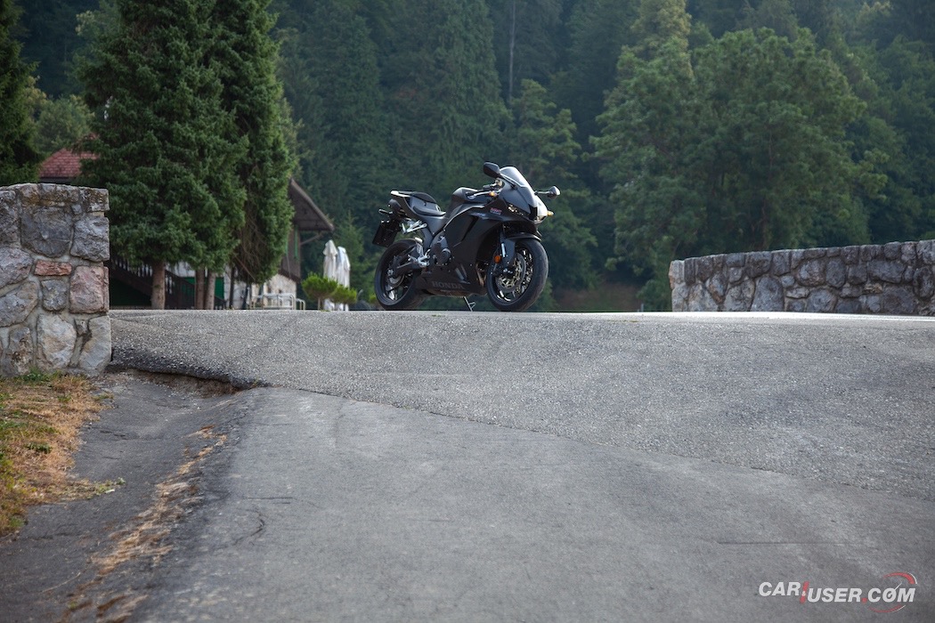 Tako je prava redkost, da mi v sodobnih časih pod zadnjico pride kak testni cestak. In CBR-ke sem se resnično razveselil. Praznik v malem. Naj poudarim, da sem po srcu “nedeljski” motociklist. Ko jaz opravim s testom, ostanejo robovi pnevmatik kot novi. Omejevalec vrtljajev si mirno privošči dopust (edina izjema je bila Honda GB350). Ni mi do drgnjenja kolen, ni mi do brezglavega ožemanja ročice za plin. In ko sem se takole turistično prevažal do Bleda, ves mravljinčast po predelih, za katere sploh nisem vedel, da jih imam in se je občasno merilnik vrtljajev priplezal tja do številke 6.000 … kar ni niti pol poti do omejevalnika, sem se spraševal, kdo za vraga lahko na običajnih cestah kroti vseh 89 kilovatov.