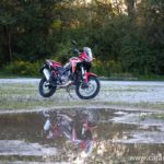 Za izredno vodljiv in zaupanja vreden motocikel se je Africa Twin izkazala tudi po nalivu. Kar gre vsekakor zahvala sedemstopenjskemu sistemu proti zdrsu zadnjega kolesa HSTC, protiblokirni zavorni sistem Cornering ABS, Throttle By Wire sistemu plina (TBW) in še in še! Ni skrivnost, da sem v osnovi nekoliko proti preveč elektronike, ampak v takih razmerah pride pomoč prav. Moj enostavni analogni procesor v glavi težko obvlada nešteto gumbov in celo zaslon na dotik pri tem čudu elektronike. Moji možgani tega enostavno niso zmogli.