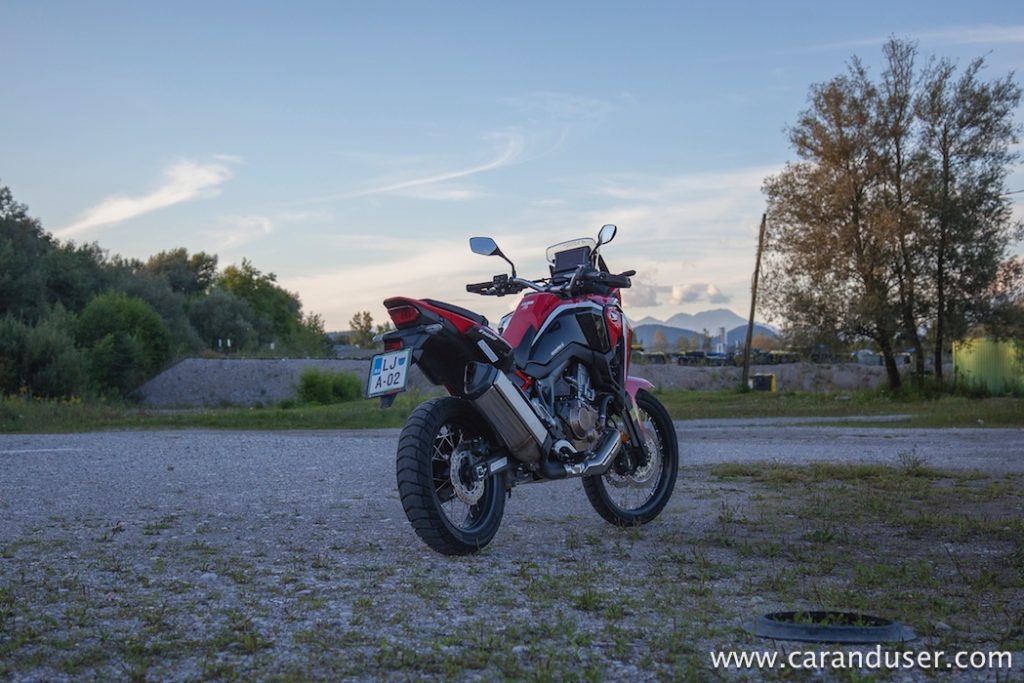 Navdušila me je tudi njena ciklistika, ki sem jo ravno zaradi nenormalnih vremenskih pogojev dodobra izkusila. Prevozili sva vse od sončne Primorske, hitrih avtocest pa do stoletnih nalivov in celo točo sva našli tam na Črnem kalu. Ampak v vseh omenjenih razmerah jo lahko samo potrepljam in pohvalim. V vseh pogojih sem imela v Africo popolno zaupanje. Na avtocesti se je izkazal večji agregat s 1.084 kubičnimi centimetri, ki zdaj zmore 75kW (102 KM) / 7,500/min in 105 Nm / 6,250/min. Primerno sta dodelana tudi menjalnik in sklopka. Pohvali se s tristopenjskim sistemom proti dvigovanju prednjega kolesa, ki pa ga lahko bolj kaskadersko naravnan motorist tudi popolnoma izključi.