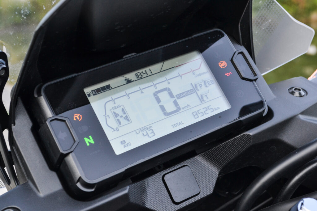 Vseeno vedno malo okrcam agregat, saj 750 kubičnih centimetrov na papirju sploh ni malo, a 59 konjev, kolikor jih razvije se zdi precej skromna številka, za motocikel teh gabaritov. Vedeti je treba, da ima motocikel dobrih 220 kilogramov, s čimer zagotovo ni med lažjimi v segmentu. Kljub temu se lahko pelje izredno lepo, z nekaj znanja in tehnike tudi skozi ovinke kar dinamično. Že na videz, pa tudi v praksi ima celo nekaj terenskega pedigreja. Edinole ob naglem pospeševanju nisem bil ravno suveren, nisem verjel, da bo vedno skočil dovolj prožno za varno prehitevanje.