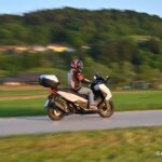 Vožnja sama je odlična. Čeprav pod plastičnimi pokrovi domuje zgolj 125-kubični agregat, je slednji povsem primeren tudi za daljše poti. Mi smo ga brez težav zapeljali iz prestolnice do morja. Za udobje na daljših poteh je zaslužnih kar nekaj dejavnikov. Za začetek je to položaj za krmilom, ki je sila neutrujajoč tudi takrat, ko se boste z motociklom vozili dalj časa. Nadalje je tu električno pomično sprednje vetrobransko steklo, ki se pomika za 18 centimetrov. V kolikor bodo vaše poti ozaljšane še z mandeljcem (ali mandeljko) na zadnjem sedežu, bo slednji/-a, v primeru nameščenega pametnega kovčka, imela še odlično oporo/naslon za hrbet. Pri 15 „konjih“ seveda ne gre pričakovati hitrostnih rekordov na dirkališčih, a je moči povsem dovolj, da se boste lahko zapeljali do končne hitrosti nekje pri 120 km/h.