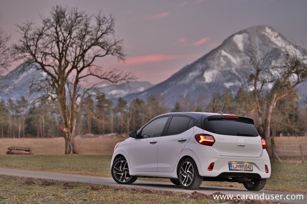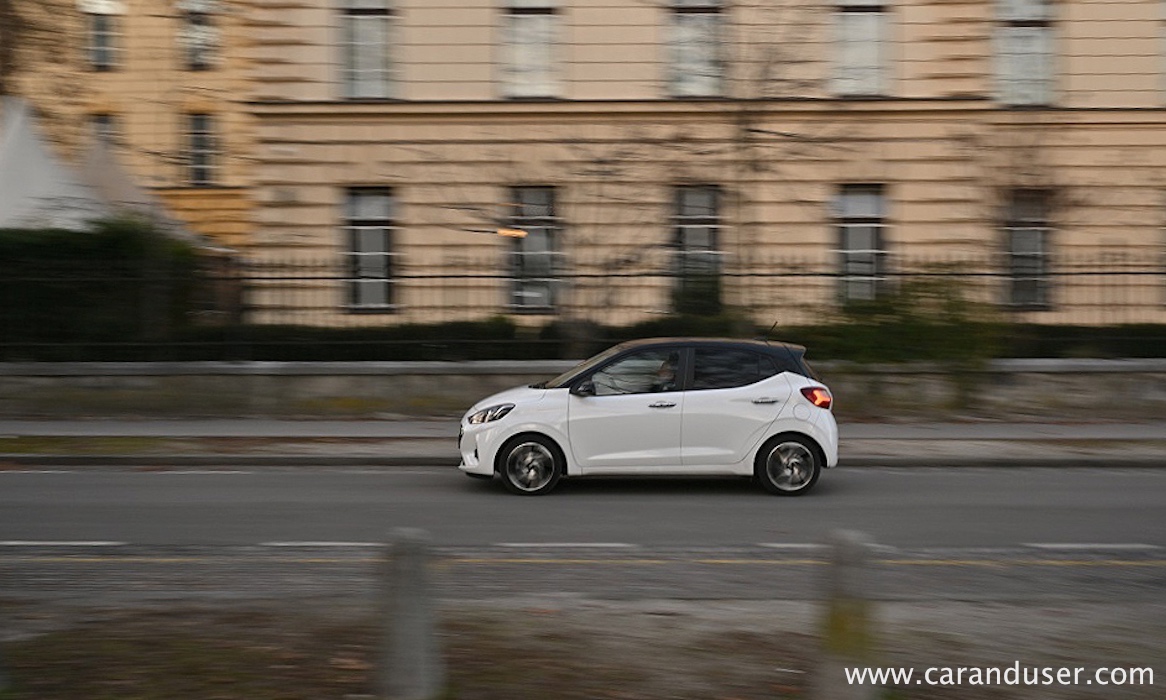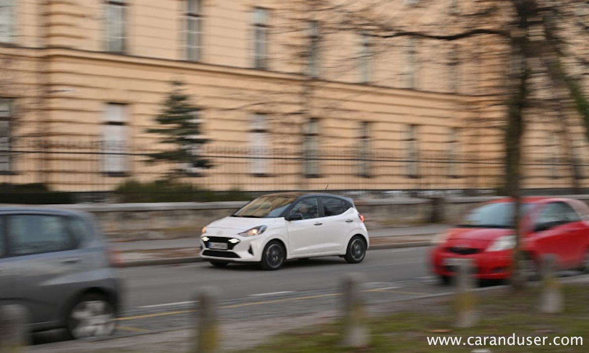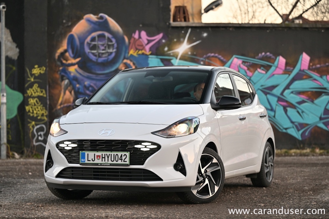 Sam se rajši poda na potep v mestni vrvež, predvsem v uličice, ki so glede širine prej odmerjene kolesarjem in skirojem kot sodobni avtomobilski hordi. Prenovljeni i10 meri le 3,7 metra v dolžino in je tako izredno agilen med tlačenjem v majhne parkirne prostore v centru prestolnice, ki so ostali odmerjeni po JUS standardu. Prav urbana okretnost je glavna prednost Hyundai malčka, zato so mu tudi odmerili dva relativno skromna atmosferska agregata – litrski trivaljnik s 67 KM in 1,2-litrski štirivaljnik s 84 KM. Mi smo imeli v testnežu vgrajen zmogljivejši kuhalnik oktanov, za katerega se zdi, da je mali korejski mestni srajčki pisan na pločevino. Povsem dovolj igrivosti ima za sledenje mestnemu utripu in hitenju po mestnih obvoznicah, medtem ko bodo daljše avtocestne relacije manj udobne in zaradi le petih prestav visokovrteče ter hrupne. Poraba je skozi celoten test znašala 6,4 litra, medtem ko smo na normnem krogu zabeležili 6,1. Soliden zapitek za majhen atmosferski motor, ki občasno zahteva nekaj več priganjanja.