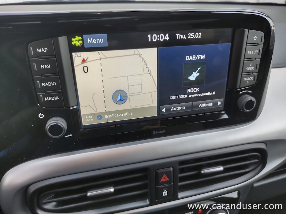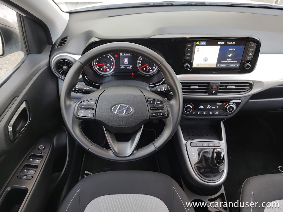 Ambient ni le prostorsko soliden, temveč zagotavlja kar nekaj uporabnih odlagalnih mest, v osrednjem delu pri ročici menjalnika je možno brezžično polnjenje pametnih naprav, za piko na i pa poskrbi osrednji zaslon v velikosti osmih palcev. Ta nudi kar precej funkcij, ob vzpostavljeni povezavi na medmrežje vas recimo sproti obvešča o vremenu in stanju na cestah. V polnem »cekarju« dobrot so svoje mesto našle še vzvratna kamera, ki pripomore k tlačenju v najmanjše kotičke za parkiranje malega i10, že omenjena navigacija s Tom Tom Live storitvijo in recimo tempomat, ki je serijsko vključen že v osnovni različici.
