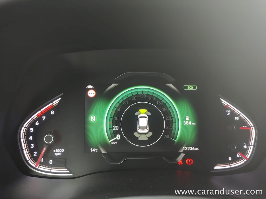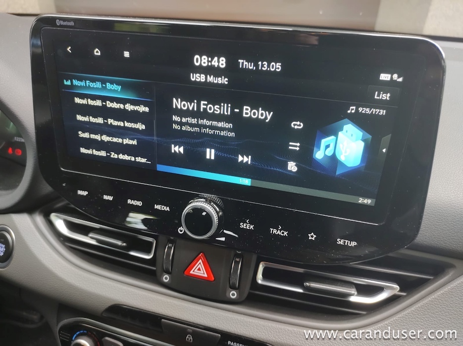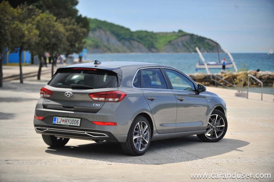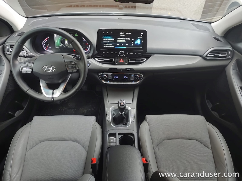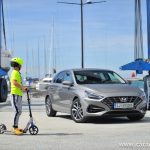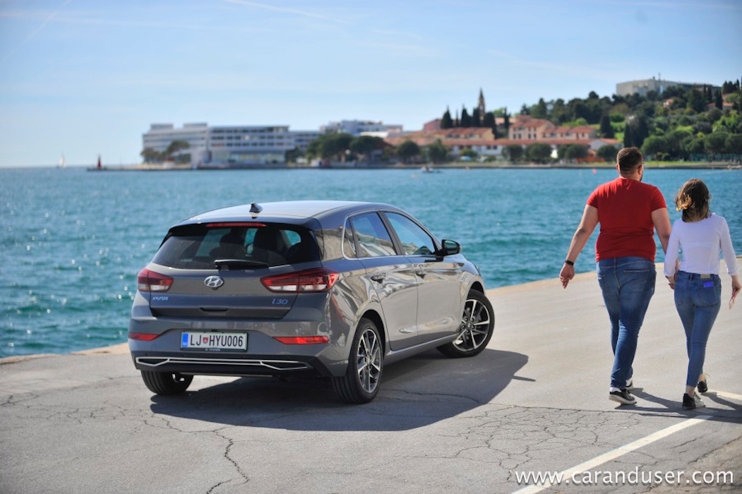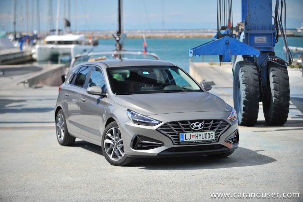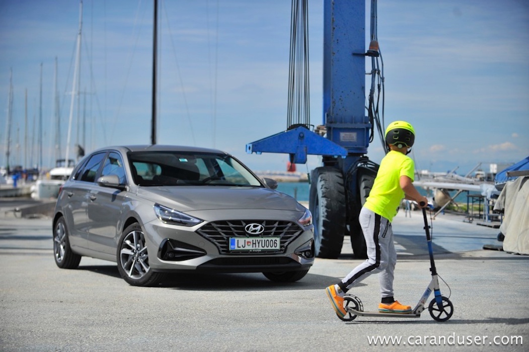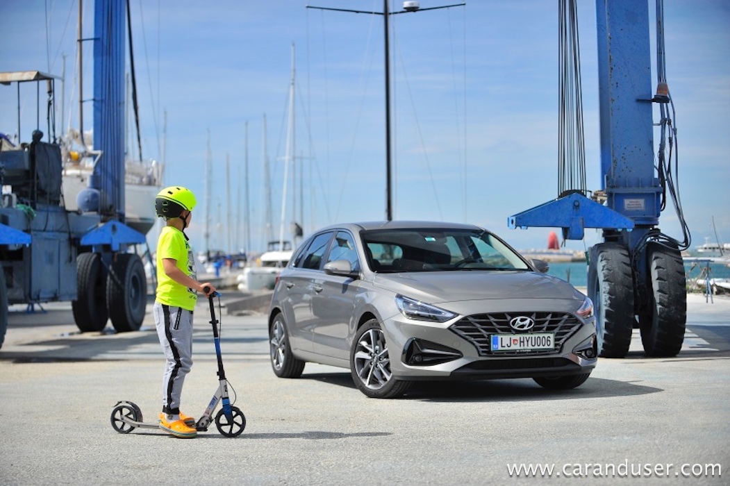 Ustavimo se pri figuri, ki je pri novem i30 drznejša in za odtenek rahlo športna. Vozilo ni več nekakšna siva miš, temveč z veseljem izkaže svojo pripadnost korejski znamki. Le poglejte to masko, ki jo (končno!) krasita lična LED žarometa z vmesnim črnim satovjem, ki oplemeniti dinamičnost videza. Da ne gre za opremljenost po okusu športnih navdušencev temveč tehnofilov je jasno šele ob vstopu v notranjost. Tam je kopica stikal in digitalnih zaslonov priča resni evoluciji korejskega hatcha. Paket opreme Impression (med drugim) prinaša oblazinjenje v kombinaciji usnja in blaga, v osem smeri električno nastavljiv voznikov sedež, predal za brezžično polnjenje mobilnih naprav ter voznikov 7-palčni informacijski zaslon med merilniki.