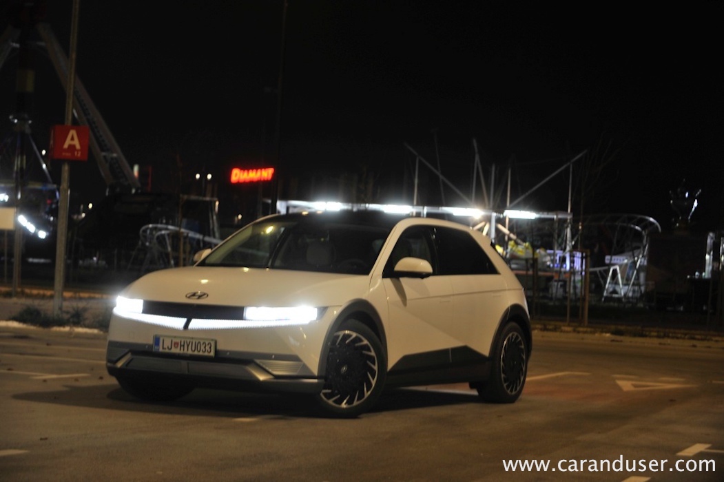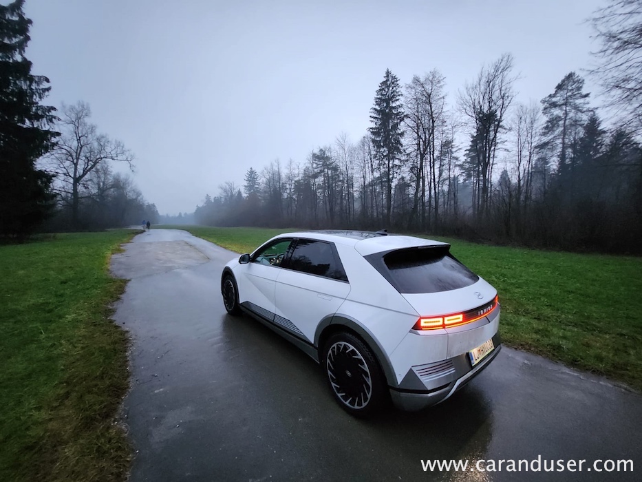 K sreči je bila bolj praktična in zemeljska pogonska tehnika vozila, ki jo tvorita večja 800-voltna baterija s 73 kWh (osnovna ima 58 kWh) in elektromotor na zadnji kolesni osi z močjo 168 kW (229 KM). Izbira uvoznika za tovrstno kombinacijo ni naključje, saj bodo podalpski kupci le redko doplačali dodatne štiri tisočake za še bolj zmogljiv štirikolesni pogon, čigar tehnikalije so odvisne veličine baterije. Mi lahko potrdimo, da smo v druženje prejeli uporabno pogonsko dvojico, ki v teoriji (WLTP podatki) zagotavlja do 480 kilometrov brez vstavljanja električnega kanila, žal pa smo v zimskih razmerah vseeno dosegli zgolj dobrih 300 mestnih kilometrov in krepkih nekaj deset manj avtocestnih. Mraz in akumulatorji že od nekdaj pač ne hodijo vštric, zato avtocestna poraba 28 kWh na sto prevoženih ne preseneča. Pri 115 km/h in Eco profilu je srkanje elektrike še vedno znašalo krepkih 23 kWh na sto kilometrov. Spodbudnejša je vozna dinamika, saj zadnji pogon pokaže svojo agilnost v prav vsakem trenutku, vendar pozor. IONIQ 5 je težak dve toni ter posledično umirjen in eleganten voz, ki ne mara zajemati zavojev z veliko žlico, zato pretirano okretnost odmislite.