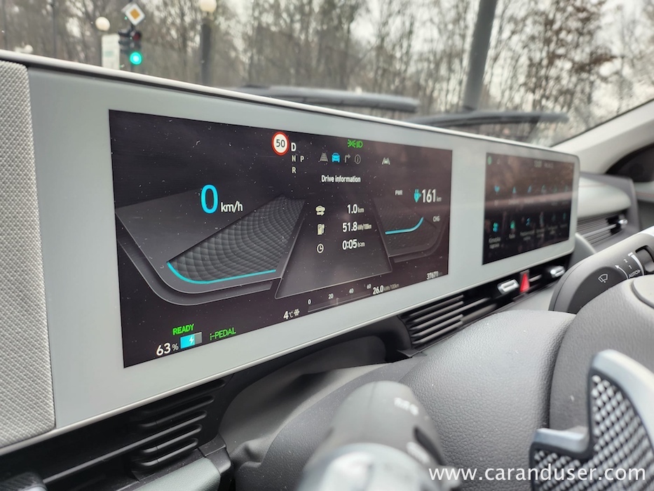 Bivalno ugodje med drugim tvorijo prijetni v vse smeri pomični usnjeni sedeži s funkcijo počivalnika (za tiste polurne postanke na hitrih polnilnicah), vzdolžno pomična zadnja klop z nastavljivim naklonom hrbtišča ter dva 12,3-palčna digitalna zaslona recimo. Preostale tipke in prikaz na ekranih je povzet po najsodobnejših Hyundai modelih, katerim je pot utrl zdaj morda malce manj futuristični Tucson. V primeru izbire najbogatejšega sklopa opreme Impression boste v vozilu med drugim našli še funkcijo V2L (Vehicle-To-Load), ki omogoča 220-voltno napajanje zunanjih električnih naprav, paket inteligentnih asistenčnih sistemov, 360-stopinjsko kamero okolice vozila, osvetlitev ambienta v 64 barvah in električne potopne vratne kljuke. Prav čeden pušeljc dobrot, kajne?