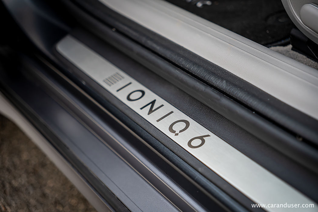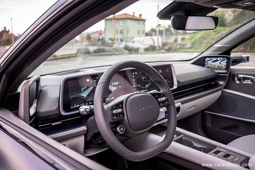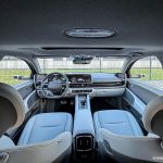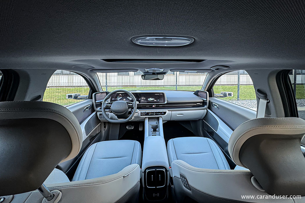 Ostalih pripomb o obliki in kvaliteti notranjosti nimamo, uporabljeni materiali so kljub kombinaciji z nekaj »ekološkimi« vsadki vrhunski, notranjost deluje prestižno, prepriča vonj po pravem usnju in na otip prijetne strukture tudi nekaterih trših »eko« plastik. Notranjost jemlje navdih pri Ioniqu 5 s katerim si deli števce in info-zabavni sistem in je moderna, prečiščena, pregleda ter intuitivno uporabna.