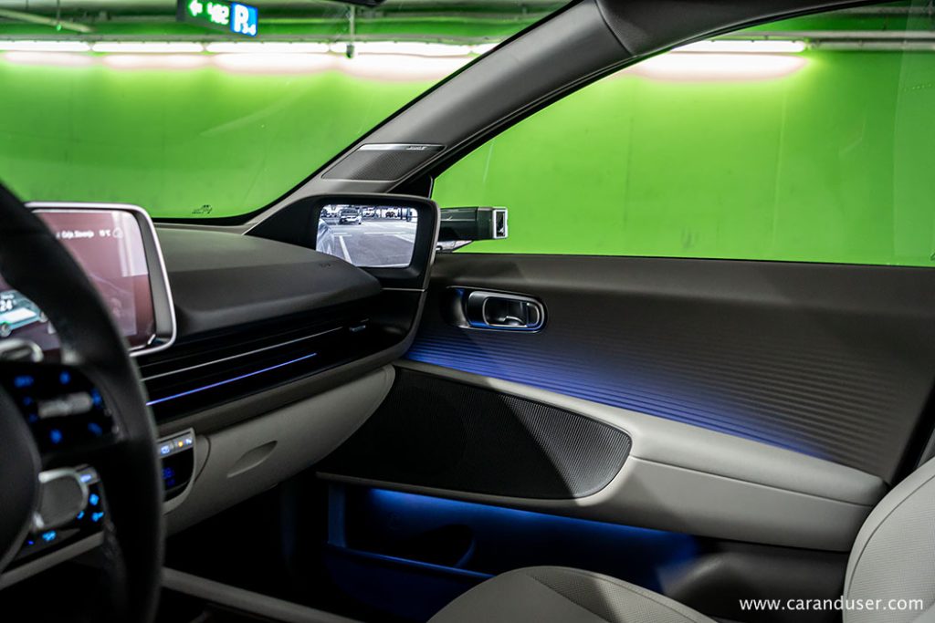 Zakaj v narekovajih? Enostavno, v testnem Ioniqu so na mestih klasičnih ogledal nameščene kamere v notranjosti pa dva izjemna OLED ekrana, ki presenetita tako z resolucijo kot tudi dejstvu da se v temi obnašata kot prava ogledala in ne oddajata nikakršne svetlobe. Tudi privajanje na takšen tip ogledal je bilo precej lažje kot sem si predstavljal na začetku.