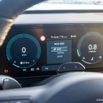 Preostanejo nam le še digitalni merilniki. Tudi ti se bohotijo na 12,3-palčnem zaslonu in ponujajo izredno prepričljivo resolucijo in osveževanje prikazanih podatkov. Na merilnikih so, kot je to danes že povsem običajno, prikazane vse podrobnosti o vožnji in stanju vozila, Kona prav tako izredno učinkovito in natačno bere prometne znake in jih prikaže na zaslonu, ob sprembi omejitve hitrosti pa z nežnim piskom o tem obvesti voznika.