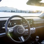Pa začnimo s slednjim. Takoj ob prvem stiku z voznikovim okoljem je jasno, da so pri Hyundaiju upoštevali kritike večine sveta in najpomembnejše, ter največkrat uporabljene, komande pustili na za to posebej namenjenem delu armaturne plošče v obliki klasičnih gumbov. Ergonomija uporabe dvoporočne klimatske naprave je poznana in intuinuativna ter omogoča upravljanje brez pretiranega umikanja pogleda s cestišča. Naslednji v nizu je info-zabavni sistem. Ta se v rahlo ukrivljeni stekleni celoti z digitalnimi merilniki bohoti na 12,3 palcih. Uporabniški vmesnik so pri Hyundaiju, v primerjavi s prejšnjo generacijo Kone, precej nadgradili in ga naredili še bolj enostavnega za uporabo. Po novem zna Kona prikazati in povedati vse stvari tudi v slovenščini! Nov uporabniški vmesnik omogoča uporabo več različnih profilov, ki jih lahko posameznik prilagodi svojim željam in potrebam. Navigacija deluje brezhibno in zna ob povezavi na vaš pametni telefon izbrati najhitrejšo pot do cilja ter vas obvarovati pred izgubljanjem živcev v dolgih zastojih.