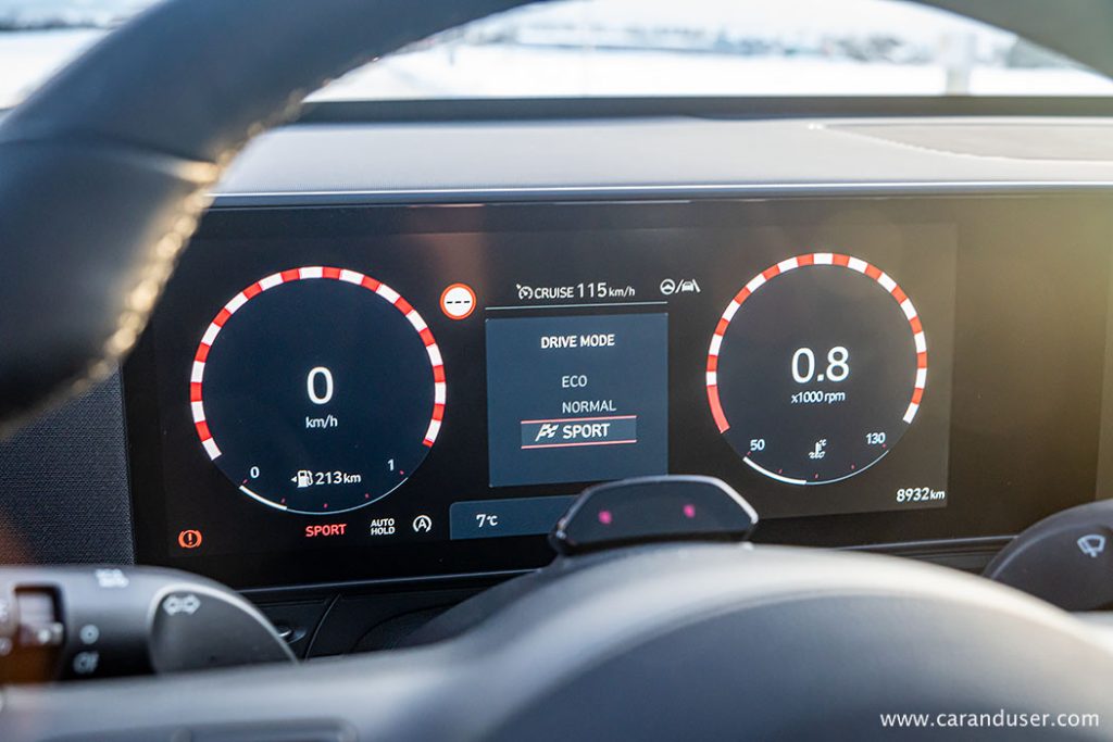 Delovanje agregata je v vseh režimih izredno kultivirano, preseneti tudi s svojo prožnostjo in skupaj z izjemno natančnim 6-stopenjskim ročnim menjalnikom odlično sodeluje. Za vse ki si želijo malce športnega pridiha v vožnji, je izbira režima delovanja Sport prava izbira, ta odzivnost agregata in stopalke za plin spremeni do te mere, da se zdi kot da agregat dodatno najde nekaj konjičkov. V nasprotju s programom Sport, program ECO zmanjša odzivnost stopalke za plin, pretikanje v višjo prestavo predlaga prej, omehča volanski obroč in tako vozniku pomaga pri zmanjšanju porabe in lagodnosti vožnje.