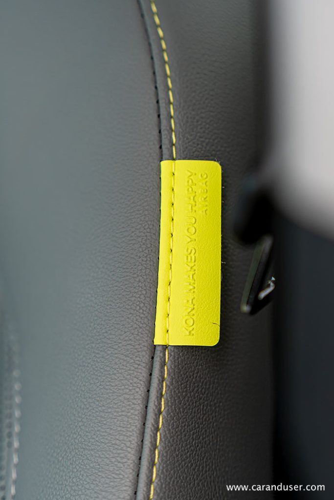 Za poživitev poskrbi paket Lime, v katerega so vključili sedeže odete v odlično svetlo usnje, hkrati so ogrevani in hlajeni, navdušujejo pa detajli v barvi limete. Prav tako je v enako barvo odeta letev na armaturni plošči. Počutje in udobje sta tako kot v klasični Koni odlična, prostora v vseh smereh za vse potnike je dovolj, za dodatno udobje med polnjenjem pa si lahko voznik in sovoznik sedeža postavita v položaj ležalnika.