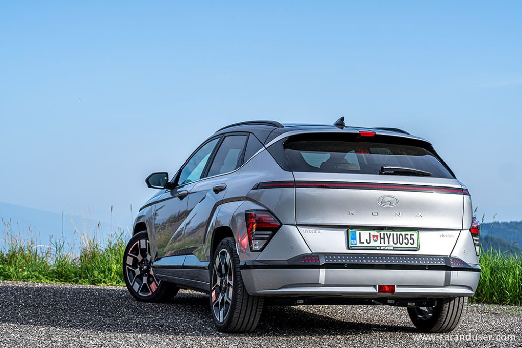 Kar je najbolj očitno pri vsakem avtomobilu, je njegova oblika. Obliko nove generacije Hyundaijevega B-SUV-ja smo pohvalili že ob druženju z njeno bencinsko sorodnico. Električna različica pa z malenkostni spremembami deluje še bolj prepričljivo in prestižno. Za razliko od klasične Kone, ima eklektična obrobe okoli koles odete v barvo karoserije, kar v izvrstni srebrni barvi z dvobarvno kombinacijo črne strehe deluje izjemno skladno. Prav omenjena barva pa še poudari ostre linije nove Kone. Platišča so pri opremi Impression v primerjavi z bencinarjem palec večja in merijo 19 palcev, ki še dodatno ozaljša atraktivno obliko karoserije. Da bo tudi v temi jasno opazno, da gre za štromarsko različico Kone, sta sprednji in zadnji svetlobni podpis oblikovana v za Hyundai značilnih pikslih.