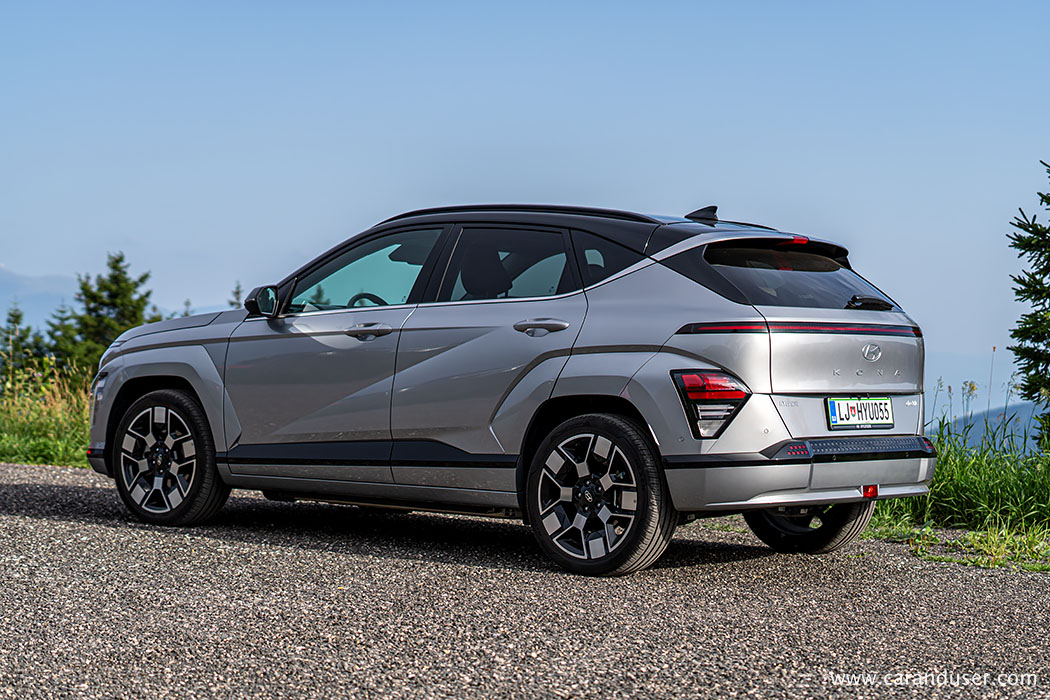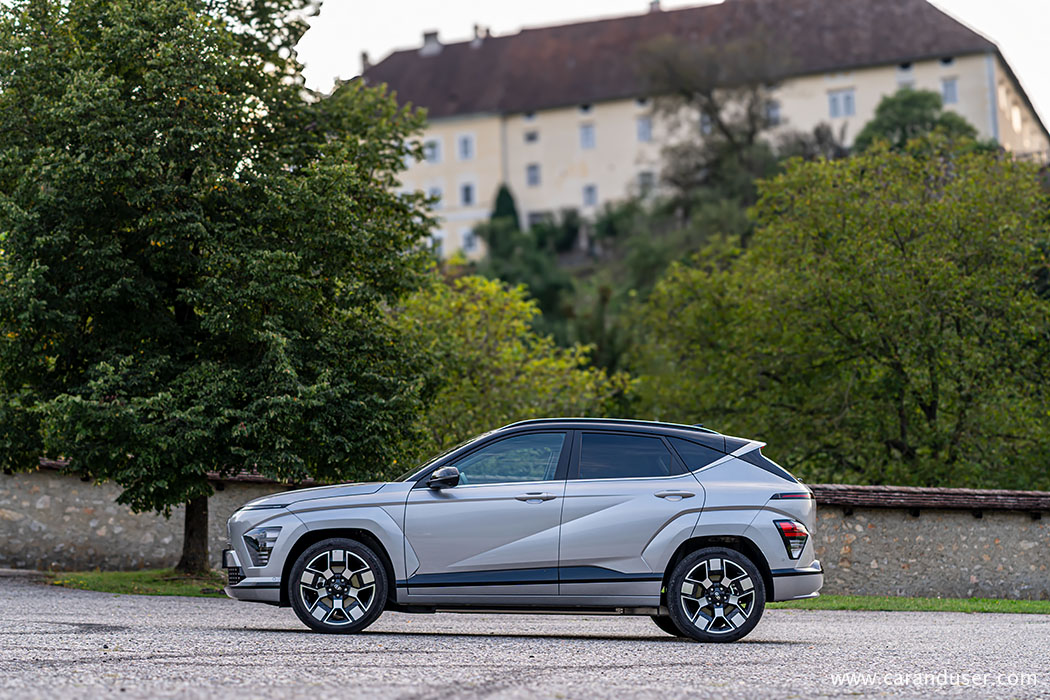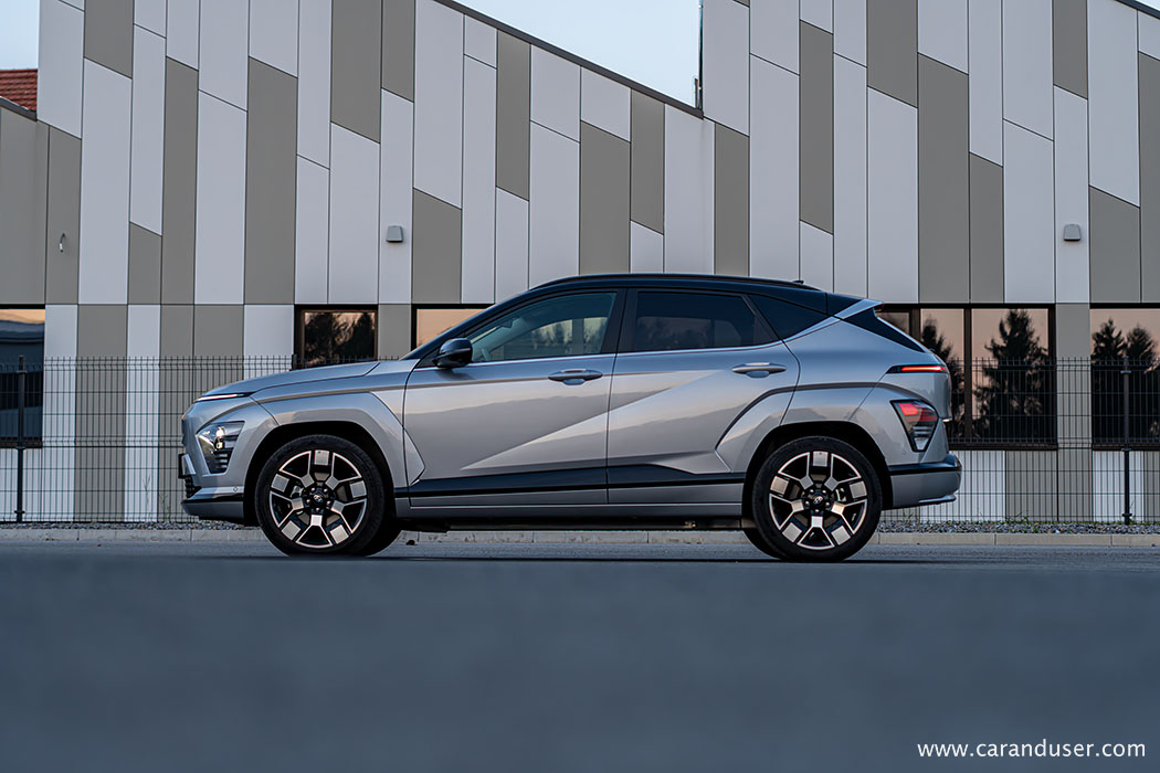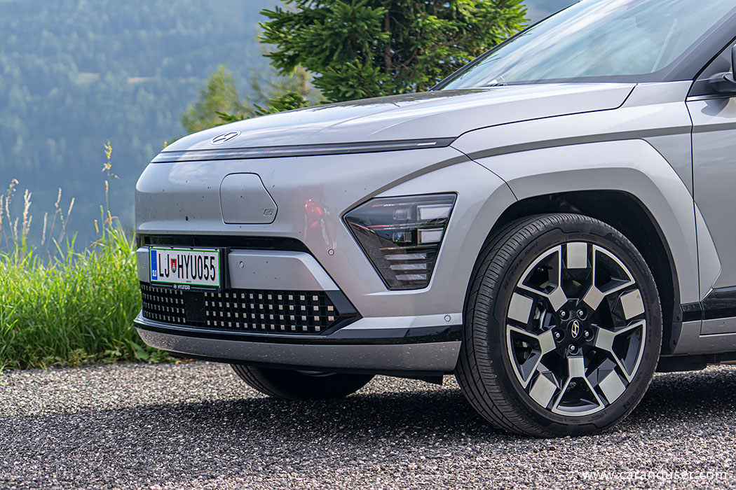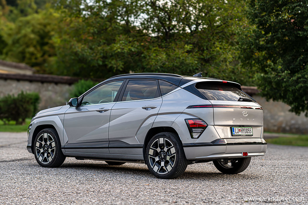 Kar je najbolj očitno pri vsakem avtomobilu, je njegova oblika. Obliko nove generacije Hyundaijevega B-SUV-ja smo pohvalili že ob druženju z njeno bencinsko sorodnico. Električna različica pa z malenkostni spremembami deluje še bolj prepričljivo in prestižno. Za razliko od klasične Kone, ima eklektična obrobe okoli koles odete v barvo karoserije, kar v izvrstni srebrni barvi z dvobarvno kombinacijo črne strehe deluje izjemno skladno. Prav omenjena barva pa še poudari ostre linije nove Kone. Platišča so pri opremi Impression v primerjavi z bencinarjem palec večja in merijo 19 palcev, ki še dodatno ozaljša atraktivno obliko karoserije. Da bo tudi v temi jasno opazno, da gre za štromarsko različico Kone, sta sprednji in zadnji svetlobni podpis oblikovana v za Hyundai značilnih pikslih.