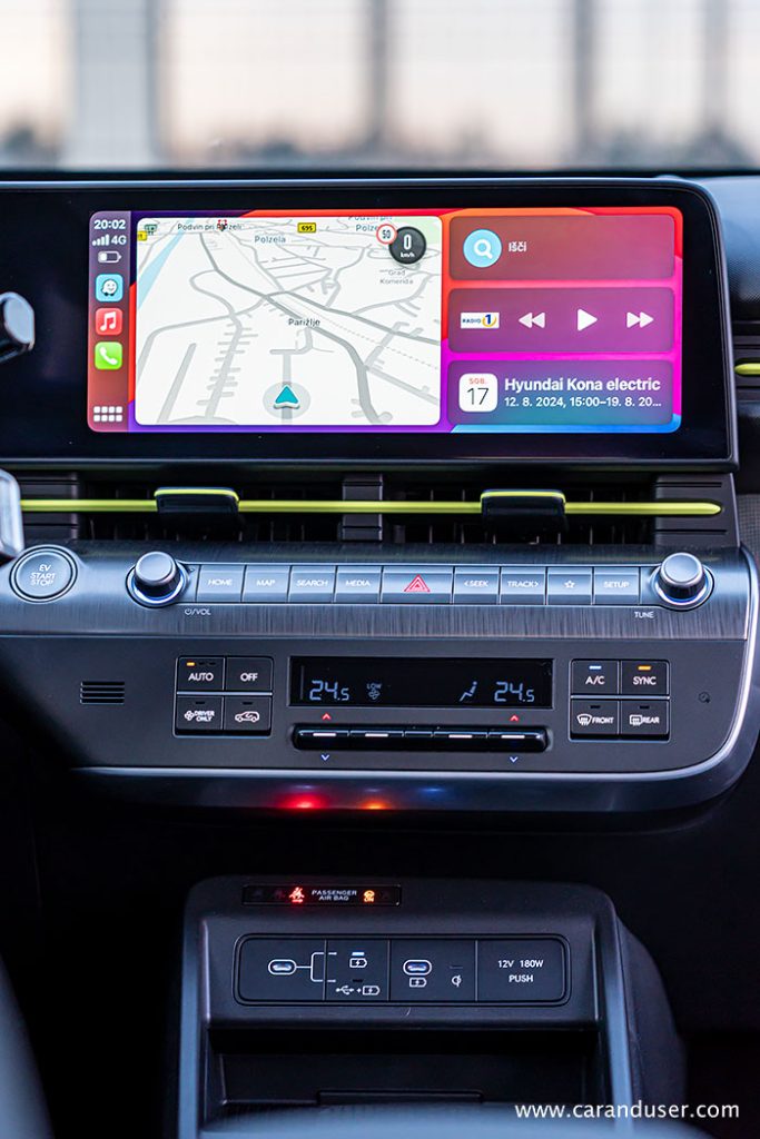 So pa zato pri Hyundaiju poskrbeli za odpravo dveh kislih lastnosti, ki smo jih podali ob testu bencinske različice. Po besedah Hyundaija pa to velja za vsa vozila, ne zgolj električna. Najbolj opazna je funkcija brezžične povezave med avtomobilom in pametnim telefonom preko aplikacij Apple CarPlay in Android Auto. Povezava je bila tekom celotnega testa odlična in tudi precej varčna do baterije našega pametnega spremljevalca, kar pri konkurenci ni povsem samoumevno. Druga kisla lastnost je bila povezana z nadležnostjo asistenčnih sistemov, predvsem tistega za prekoračitev hitrosti. Tudi tokrat je ta sistem še vedno prisoten, a so dodali možnost, da vas sistem o omejitvi le informira, ne pa tudi opozori s piskanjem.