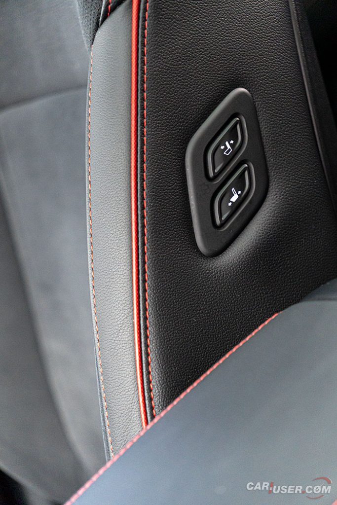 Priročen je tudi sredinski naslon za roke, prostora v in pod njim je ogromno, hkrati so vanj integrirali izbirnik voznega programa ter odlagalno mesto z brezžičnim polnjenjem za vaš pametni telefon. Malce manj prijeten je bil naslon za moja ušesa, saj je, v primeru, da na njem ni počival komolec, povzročal neprijetne zvoke.