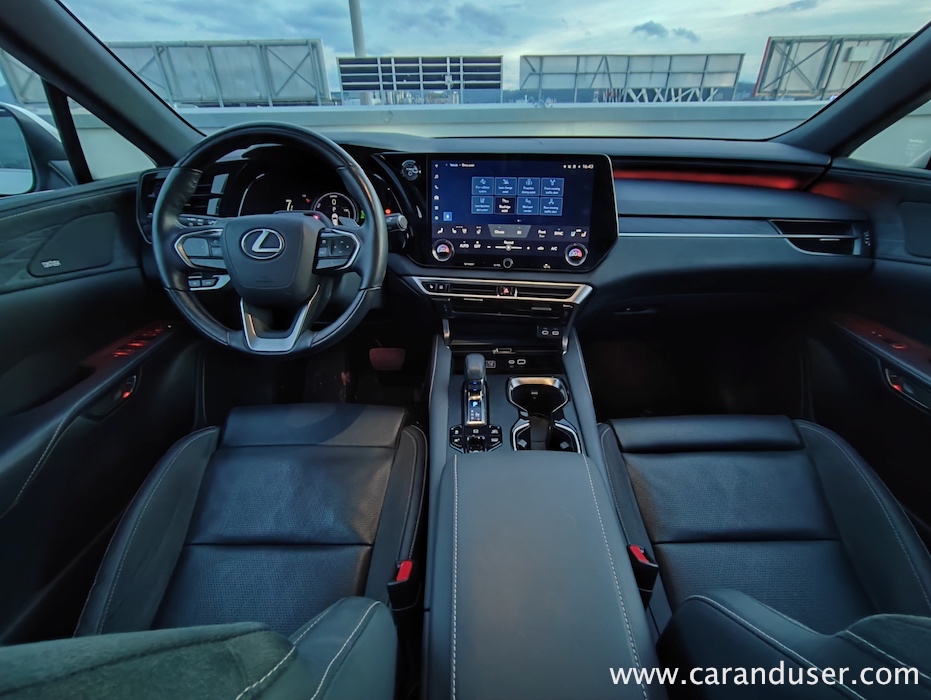 Čar Lexusa RX ni zgolj v vpadljivi podobi in sodobnemu in varčnemu hibridnemu pogonu, temveč v potovanju samem. Da bi razumeli zakaj je RX tako drugačen od svojih konkurentov, morate gojiti spoštovanje do japonske moderno tradicionalne minimalistične kulture, saj boste šele tako sprejeli vse kar vam avtomobil nudi. Ta v ospredje postavlja udobje vseh svojih gostov, ki se bodo z njim zapeljali in s tem v mislih so ga pridne roke iz dežele vzhajajočega sonca tudi zasnovale. Največ pozornosti pričakovano prejme voznik, ki se lahko kljub kopici stikal, instrumentov in treh zaslonov (multimedijski, voznikov in projekcijski) zlahka osredotoči na cestno dogajanje. Med zares izstopajoče elemente presežka na kolesih velja uvrstiti vrhunsko ozvočenje Mark Levinson Premium Surround Sound z 21 zvočniki, nanoe X Panasonicovo tehnologijo klimatizacije, ki skrbi za uničevanje virusov in bakterij še preden zunanji zrak doseže kabino, Lexus Mood Select ambientalno osvetlitev v 64 barvah in 14-ih tematskih odtenkih ter nenazadnje še ogrevane in prezračevane sedeže tako sprednje kot zadnje vrste. Slednji sta po novem le še dve, saj so ob prenovi umaknili 7-sedežno različico RX L in jo preslikali v nov Lexusov model TX.